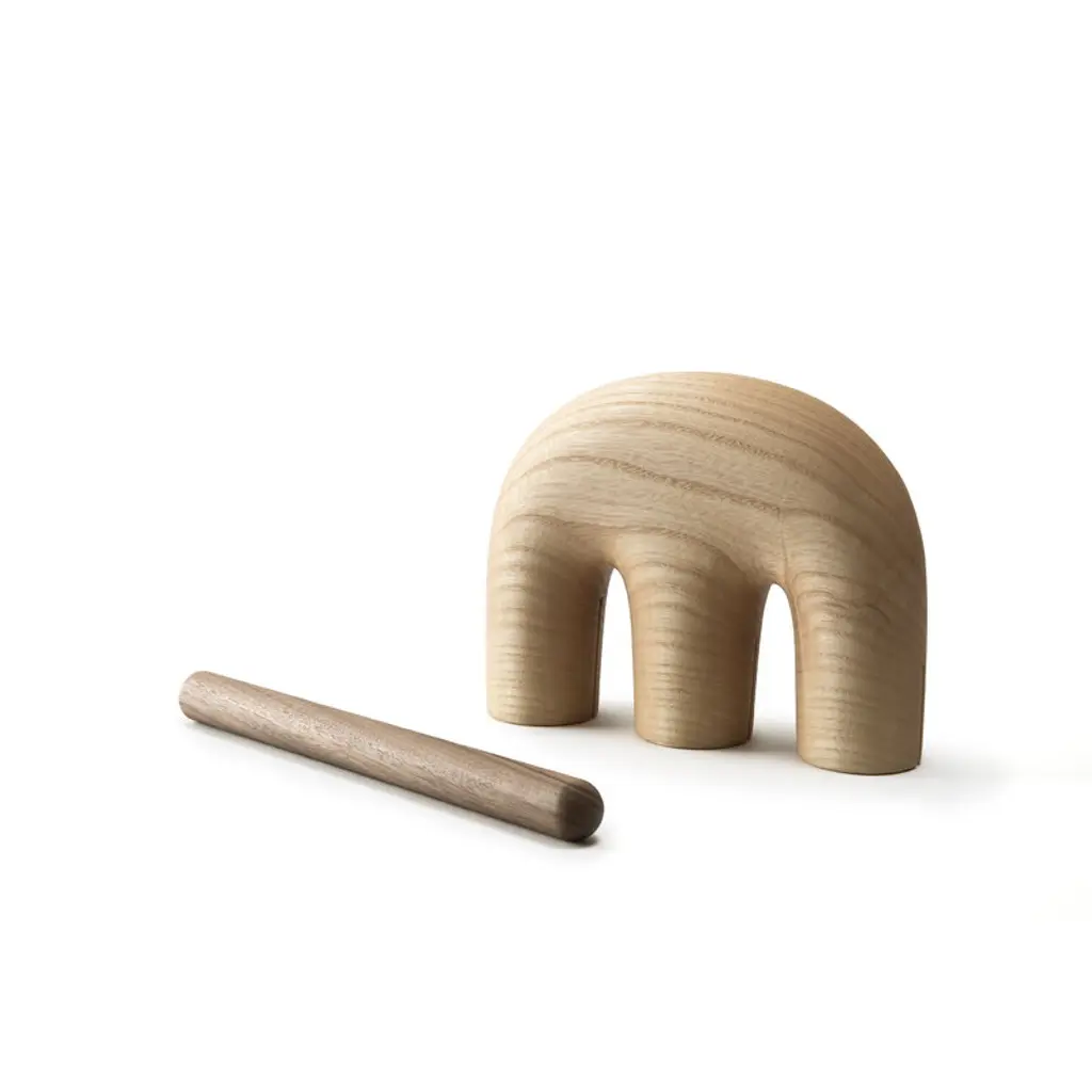 PELATA pieces' Bic-Bac-Boc is a quirky musical instrument that playfully resembles an elephant. Designed by the Norwegian duo Anderssen & Voll, this percussion instrument is as fun as it is easy to play, whether you're an experienced musician or a beginner. Just grab the featured wooden stick, and with a few taps, strokes or brushes, you can create your own unique rhythm. When you're not making music, Bic-Bac-Boc doubles as a delightful eye-catcher on your living room bookshelf or hallway side table, bringing a smile to your face with its mere presence.