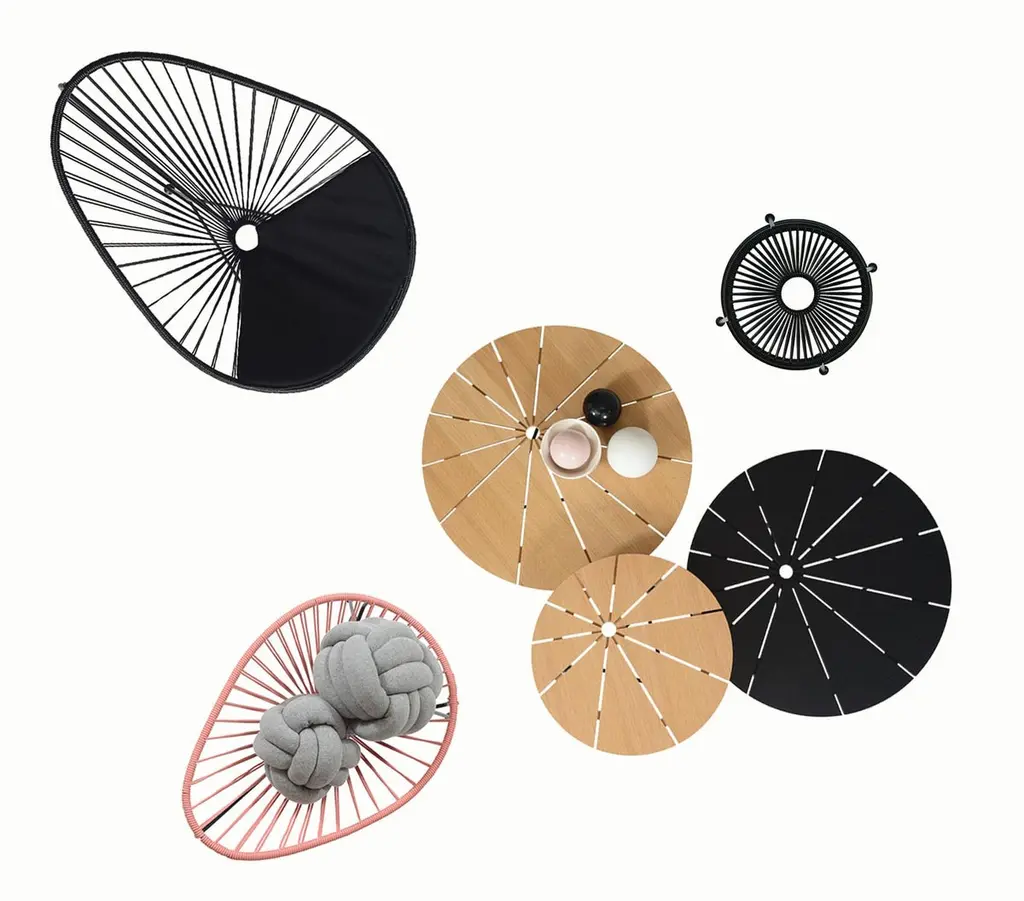 Big And Low Bam Bam Oak Table by OK DesignDimensions: D 70 x H 36 cm.Materials: Natural oak, powder-coated metal.Available in small and tall or big and low.Available in black ash, natural oak, or all metal. Please contact us.The Bam Bam table is a stunning piece of furniture, inspired by the rays in the Acapulco chair design. It is a perfect companion to the Acapulco and Condesa chair but the classic design also works great on its own. The table is a versatile piece that can be used as a coffee table or side table.Available in two sizes and two finishes – stained black ash and natural oak – the Bam Bam table is made from high-quality materials. The top is crafted from veneered MDF in Denmark, while the frame is powder-coated metal manufactured in the EU.The wooden tops are not suitable for outdoor use. In case you want to use it outside we recommend that you purchase the Bam Bam table in all metal.OK Design was founded by the Danish couple: Jacob Fasting and Kirsten Krogh. Jacob began his entrepreneurial life by founding the first bicycle courier company in Mexico City. Later his adventurous spirit led him down a new, creative path together with the architect Kirsten Krogh.Kirsten and Jacob initiated their success in Europe by introducing the traditional woven furniture from Mexico. Today they create in-house furniture as well as work in collaboration with international designers.OK Design is based in Copenhagen, the environmentally friendly production takes place in the EU, and the designs are sold in more than 40 countries worldwide.Their latest endeavour is Stella Atlántico in Isla de la Palma. A 4 floor building reaching towards the stars and located on the rim of the world’s largest erosion crater. Stella Atlántico functions as a combined visual showroom and holiday home.