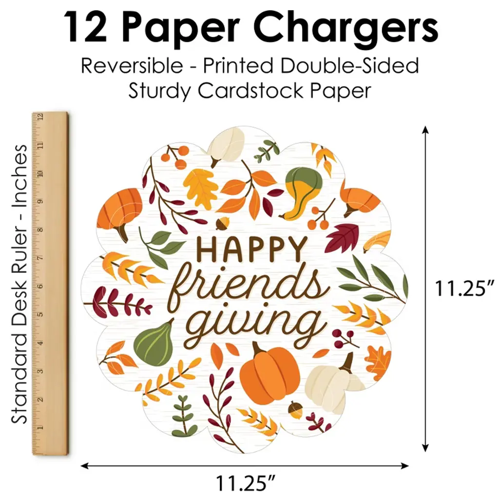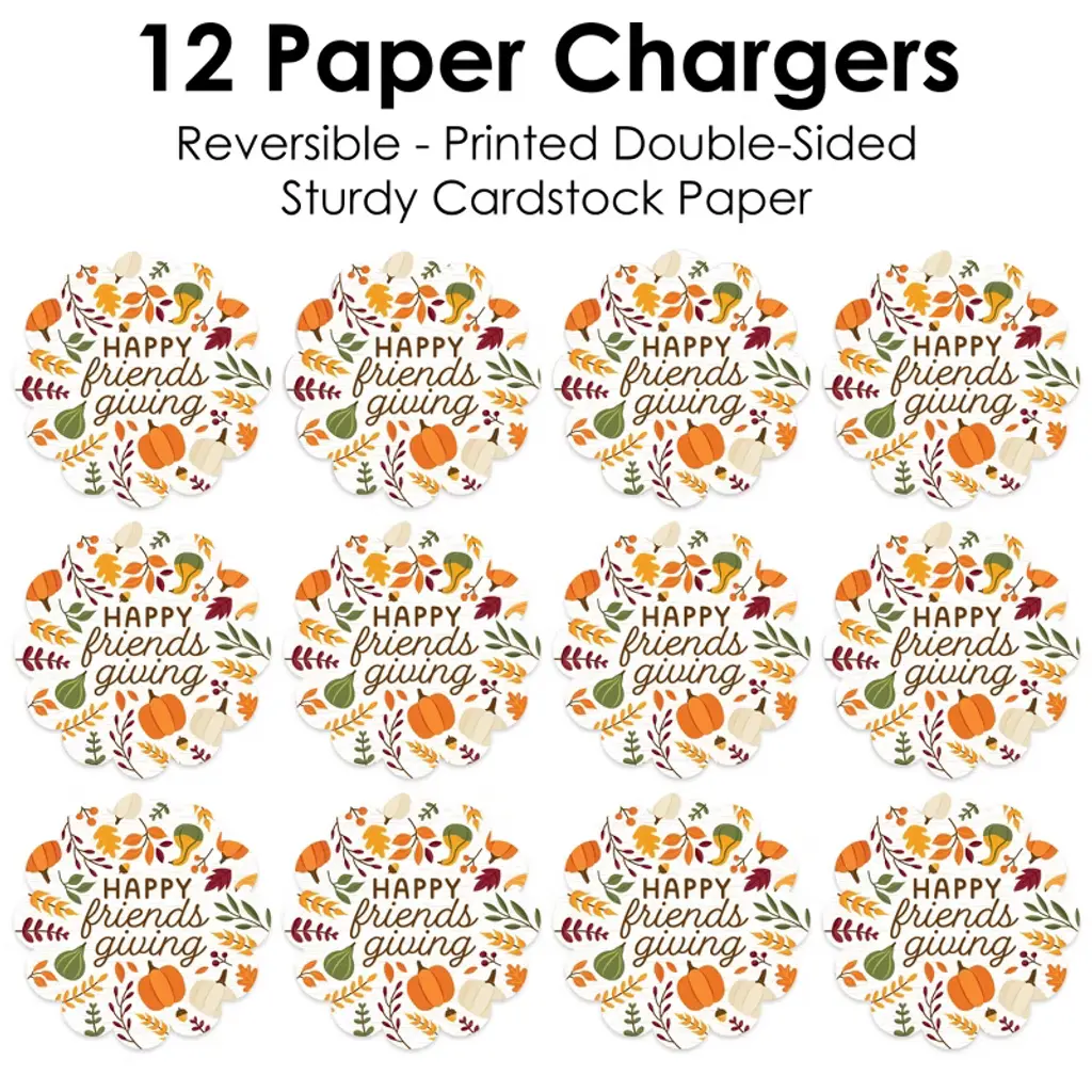 Big Dot Of Happiness Fall Friends Thanksgiving - Friendsgiving Party Round Table Decorations - Paper Chargers - Place Setting For 12