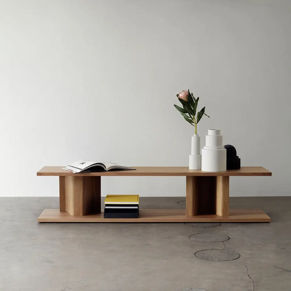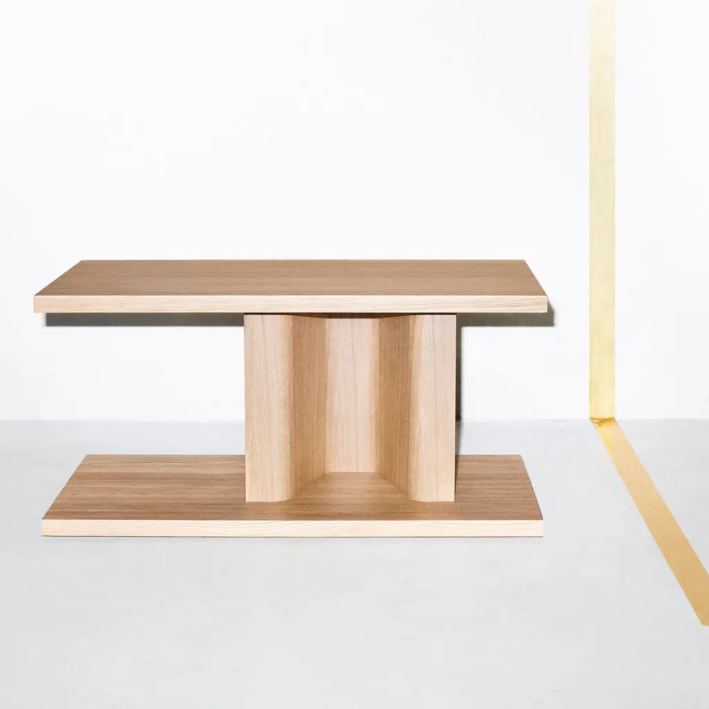 Designer Chris Martin pictures this asymmetrical piece as either an occasional table or an elegant base for a lamp, vase or sculpture. BIT juxtaposes two broad planes, separated by a thinner, hollow laminated column for a striking bit of interior architecture. Faultlessly crafted in solid wood, it examples the out-of-the ordinary thinking that characterizes maker Massproductions, the much-admired longtime collaboration between Martin and partner Magnus Elebäck.