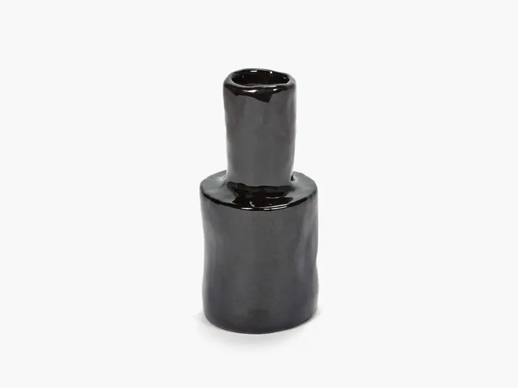 Black large nuna side table by Sebastian HerknerMaterials: Heat-resistant black and red ceramic. Technique: Glazed. Oven cooked and polished with semi-precious stones.Dimensions: Diameter 33 cm x height 40 cm Available in colors red, and black/red. And other sizes. The Nuna Side Table, designed by Sebastian Herkner, is a rustic-elegant occasional table and a subtle, yet eye-catching addition to any seating corner. The hand-made ceramic features a gentle shimmer due to the special finishing process. The range includes two designs with different heights and sizes. All models come either in black, terracotta, or a combination of the two. Ames collaborates for the production of these ceramics with two family-owned businesses based in Tolima, a province that’s been a center for pottery making and ceramic production for more than 300 years. Their workshops employ more than 70 people, many of them are family members, with specialists for each production stage – from clay digging to kiln firing to polishing. One of the few tools the makers use - most of the work is done by hand - is corn husks. Once water and clay have been mixed, the mixture is simply left to dry in the sun. This natural process requires stable weather conditions and air temperatures of more than 35 degrees Celsius. The dark glaze is applied to the vases before they go into a kiln that’s fired by wood. As the last step, the pieces are polished with semi-precious stones to create a subtle shimmer.German designer Sebastian Herkner is a long-term collaborator of Ames and has visited Colombia multiple times to experience the country’s cities, nature and people first hand. He also visited many of the ateliers that Ames has partnered with to learn about the unique traditional crafts of Colombia's regions. A sought-after contemporary designer and recipient of many industry awards, he has worked with many international design brands, creating intriguing pieces that showcase his intuition for interesting material, color, and texture combinations.