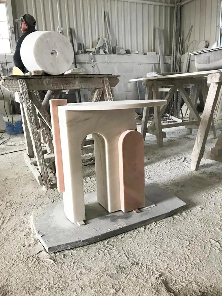 Black marble side table by Dovain StudioDimensions: H 60 x Ø 60 cmMaterials: Estremoz White Marble, Ruivina Black MarbleDovain StudioCreative direction by Sergio Prieto, a Spanish artist-designer who was born in Talavera de la Reina in 1994. He dedicated himself to the world of painting professionally since he was 10 years old, and at 18 he began to study design. He has been working in different countries around the world, like China, Índia, France, Italy, Spain and Portugal, collecting experiences and knowledge that shaped his artistic vision from an early age. Now, he lives and works in Lisbon.One of his work’s priorities is the search for the expressive language of objects, creating emotions in those who see and feel his pieces. His artistic vision is printed on each piece of Dovain Studio bringing art, decoration and design, all together within the context of contemporary design culture.