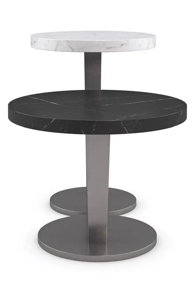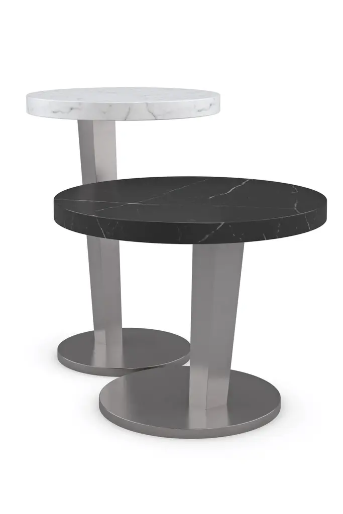 Spot-on style in a Euro-modern mix of metal and stone, this multifunctional accent table adds depth and an organic element. Topped in black marble for a touch of luxe. Sophisticated on its own; even better when paired with our La Moda tall spot table to create contrast and a multidimensional surface.