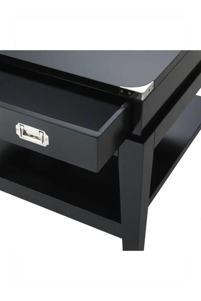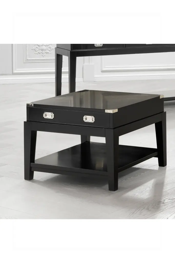 The Military Side Table is suitable for both classic and contemporary interiors. A simple yet sturdy design in modern black timber finish with nickel hardware gives this side table timeless appeal.