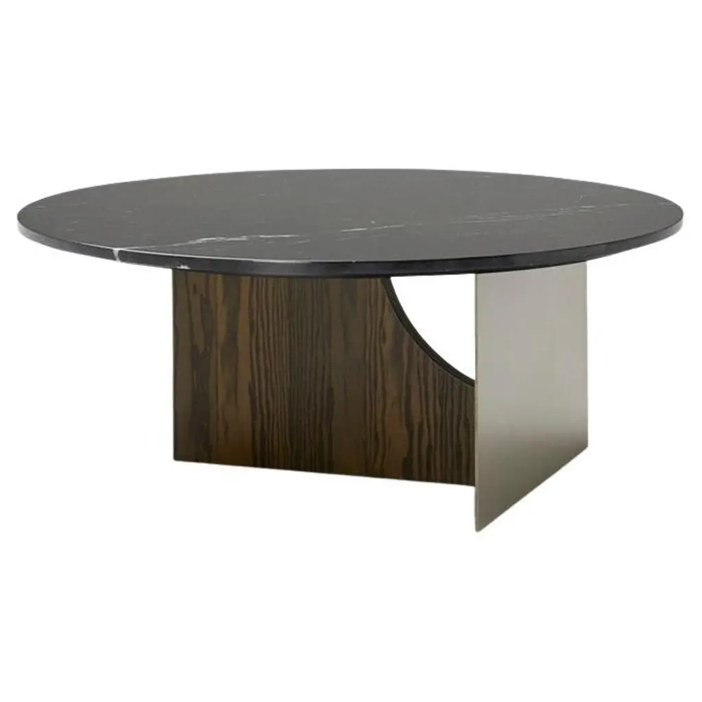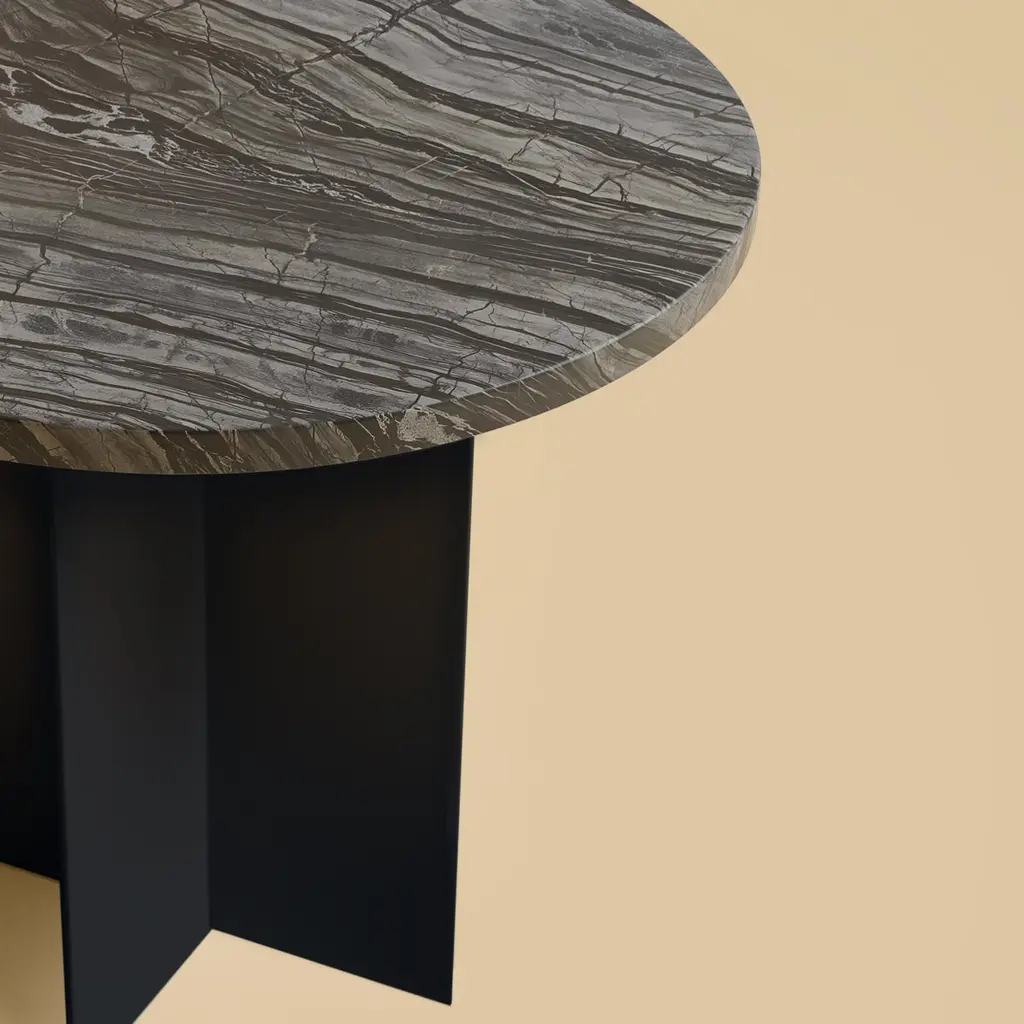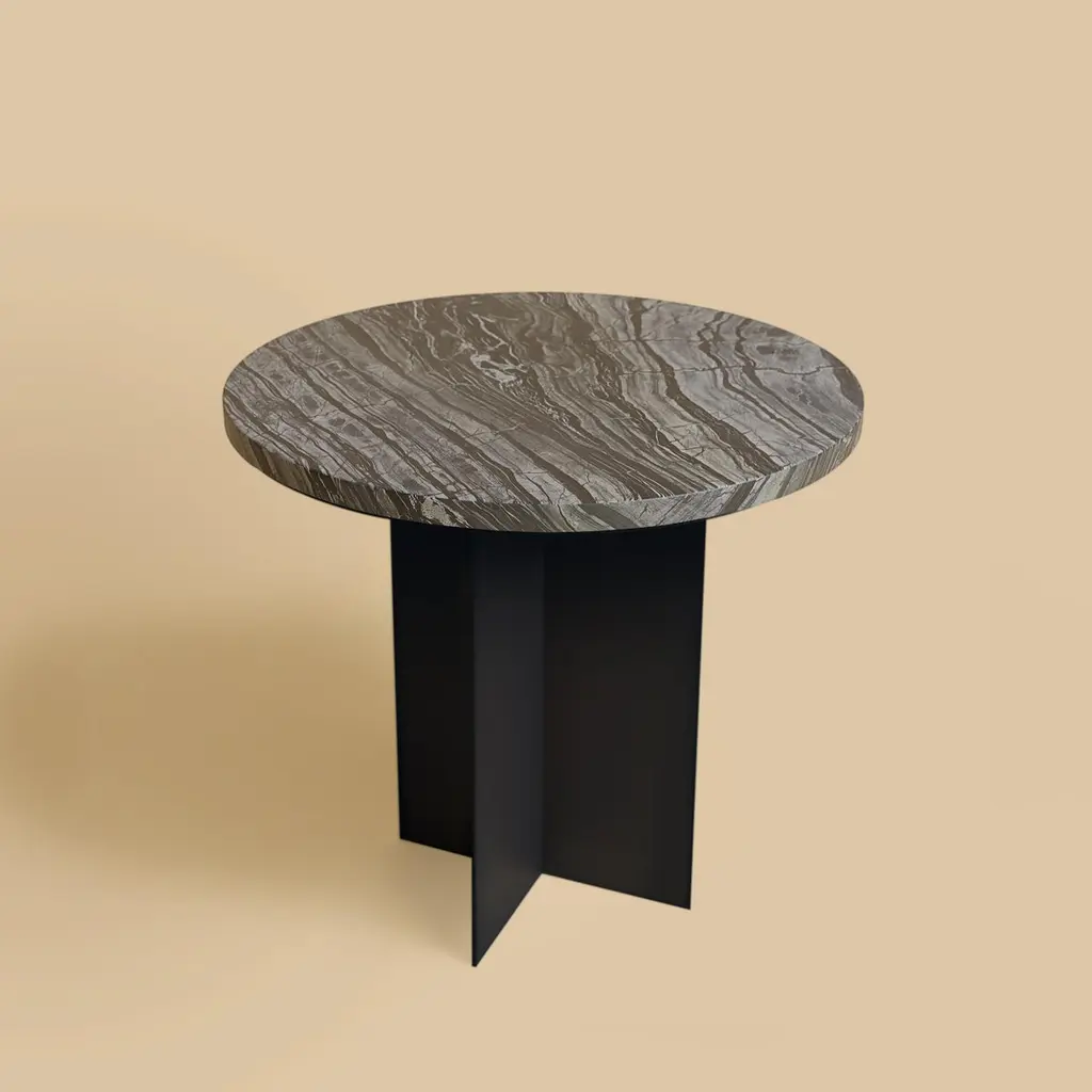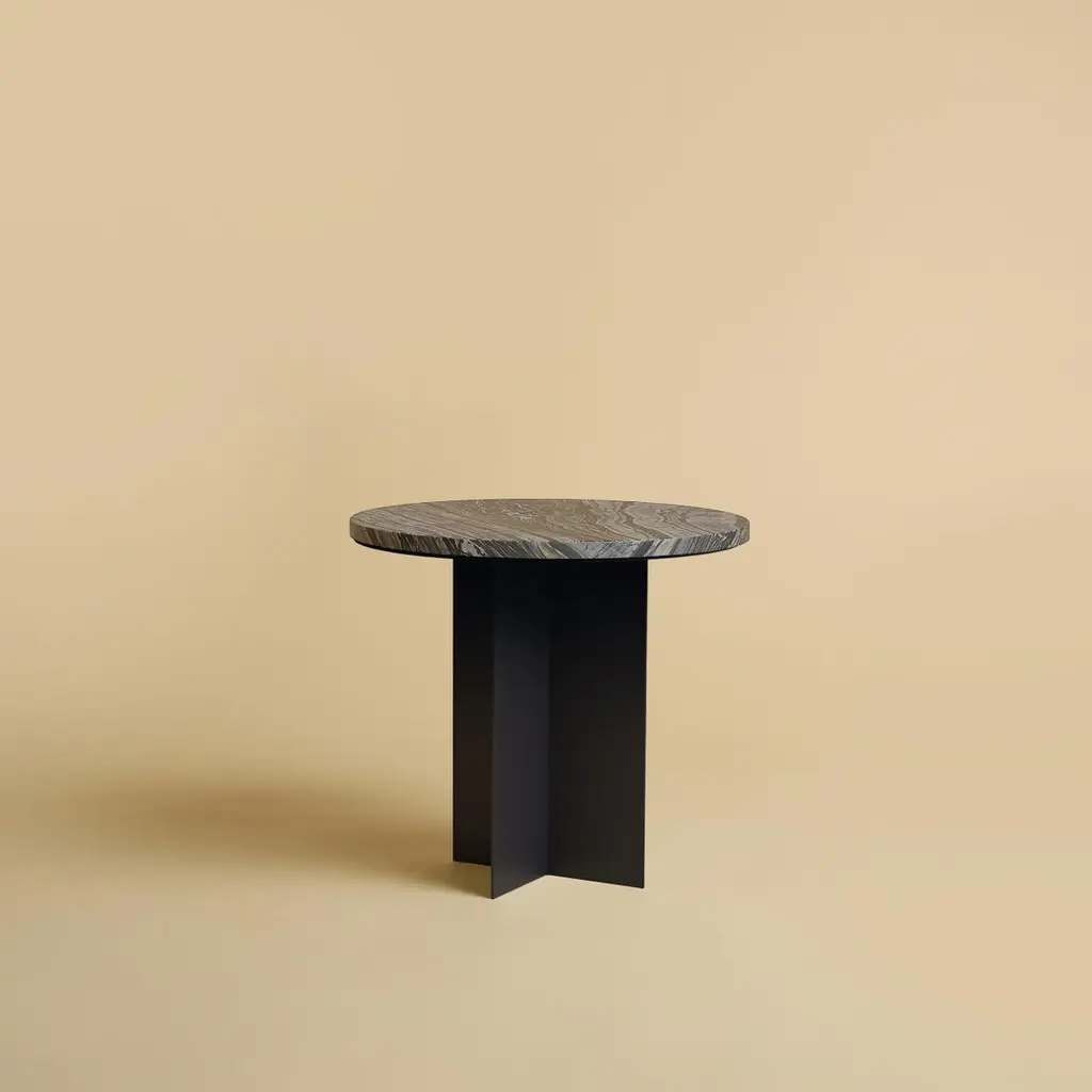 Black Steel Side Table Wiith Wavy Pattern Black Marble Top By Lebanto