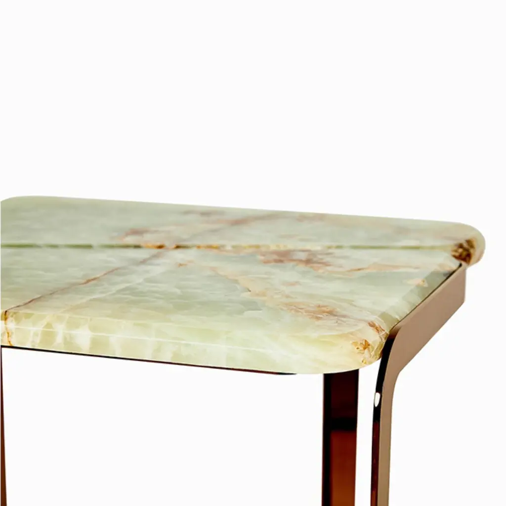 Tigris side table by Marble BalloonDimensions: W 50 x D 49.5 x H 52.5 cmMaterials: Legs made of titanium coating on stainless metal and amarble top.Named after the great Tigris RiverMarble balloon is an interior design and high-end furniture brand based in Istanbul. Marble balloon is devoted to create refined and sophisticated designs bringing the premium quality materials and finest craftsmanship together. Adhering to a design philosophy cherishing organic and asymmetrical forms whilst challenging the nature of marbles implying fluidity, incorporating only the extraordinary marbles and natural stones into handcrafted and timeless creations.