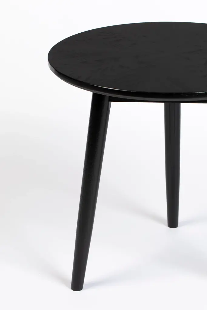 Fabio by DF is a chic side table crafted out of wood in a black finish. Atop the three oak legs is the rounded tabletop featuring natural wood grains that add to its uniqueness.