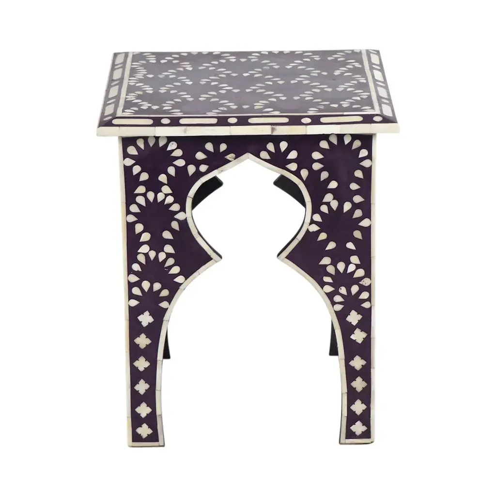 Express your playful side with these colorful, bone-inlaid tables . Handcrafted in India, they’re perfect for seating in kid’s rooms, stacking magazines in the bathroom or as a nightstand for a low bed. ● Size: 14" x 14" x 17" H ● Solid wood table ; bone inlay ● Each table is one of a kind ● Imported