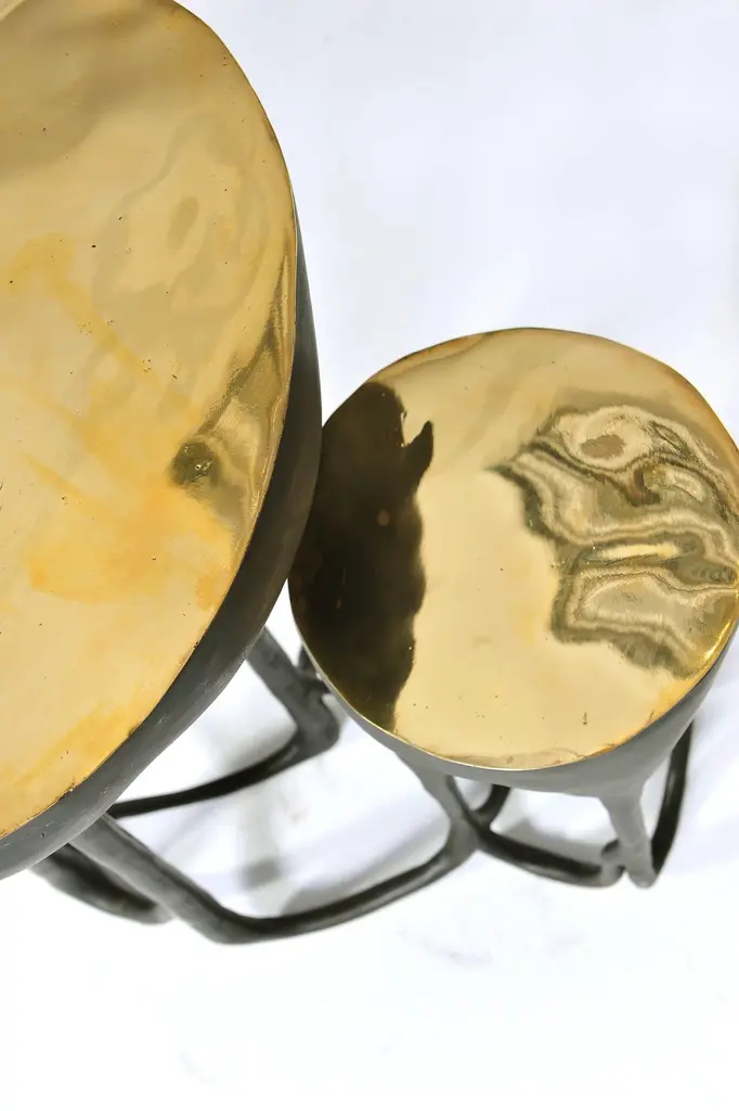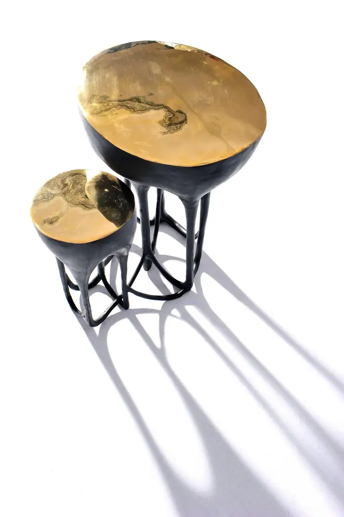 Blackened Brass Hand-Sculpted Side Table With Polish Brass Tops By Misaya