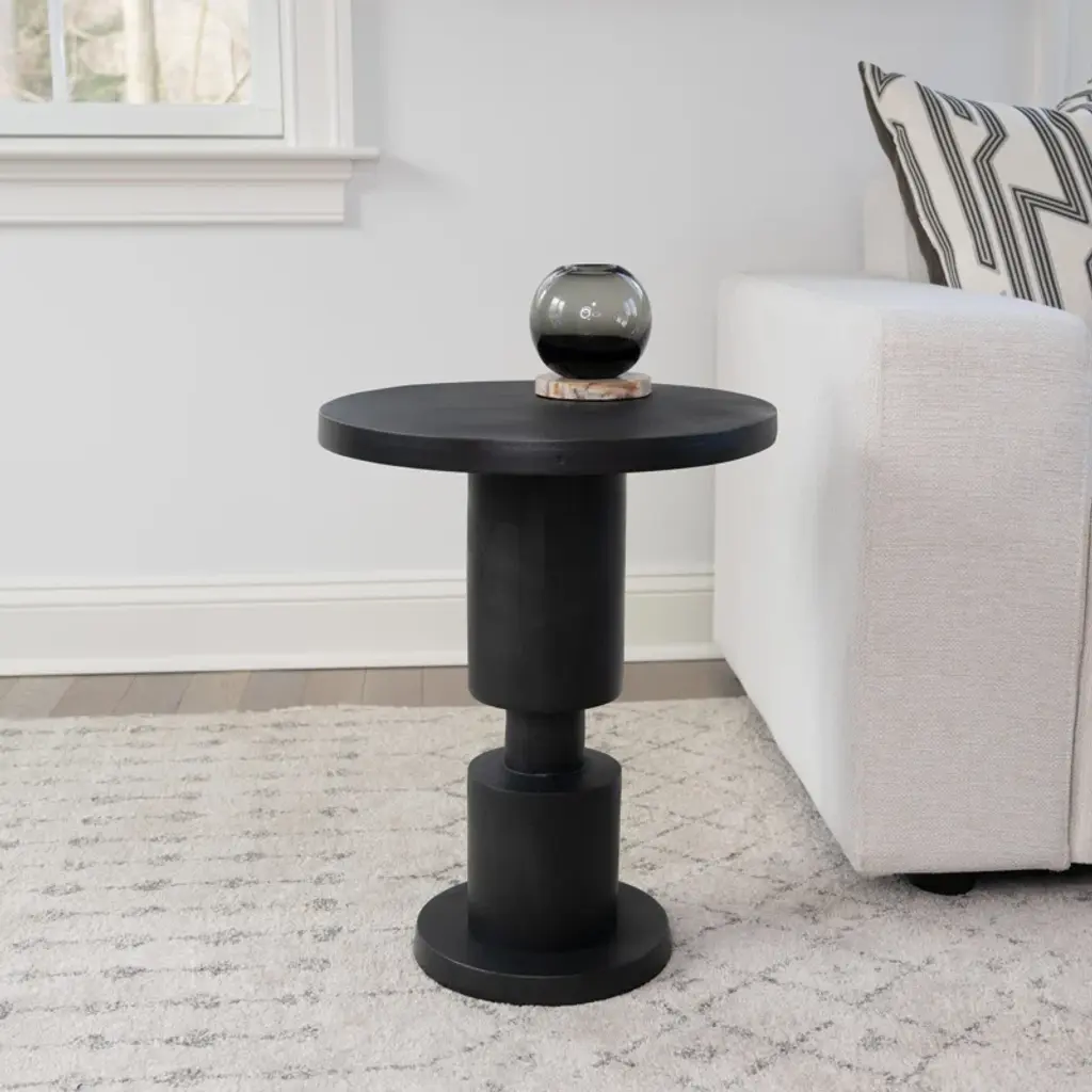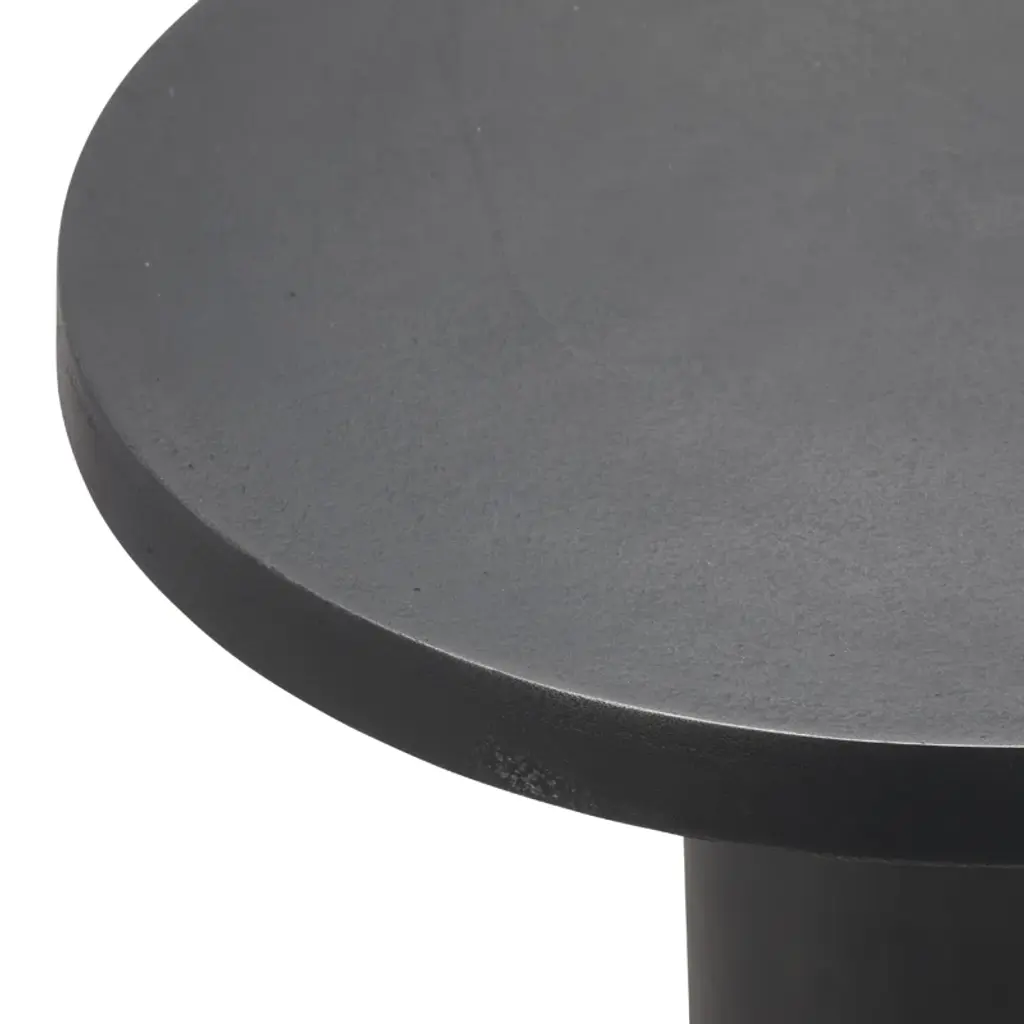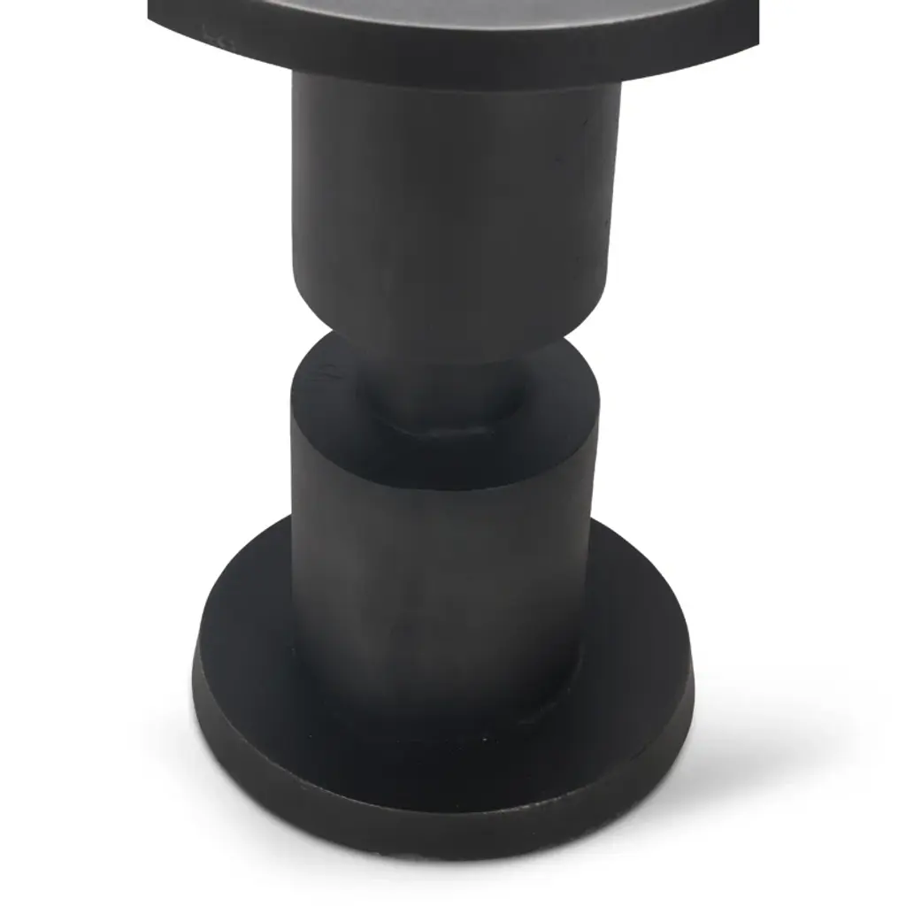 Meticulously fashioned from reclaimed aluminum, the end table captures the poised silhouette of a chess piece— featuring a cylindrical shape that adds timeless charm to any setting. Each table gains a unique patina from an artisanal hand-casting process, telling its story of resilience and individuality.