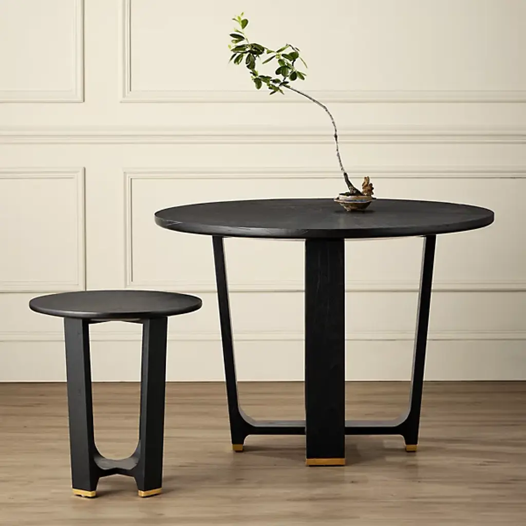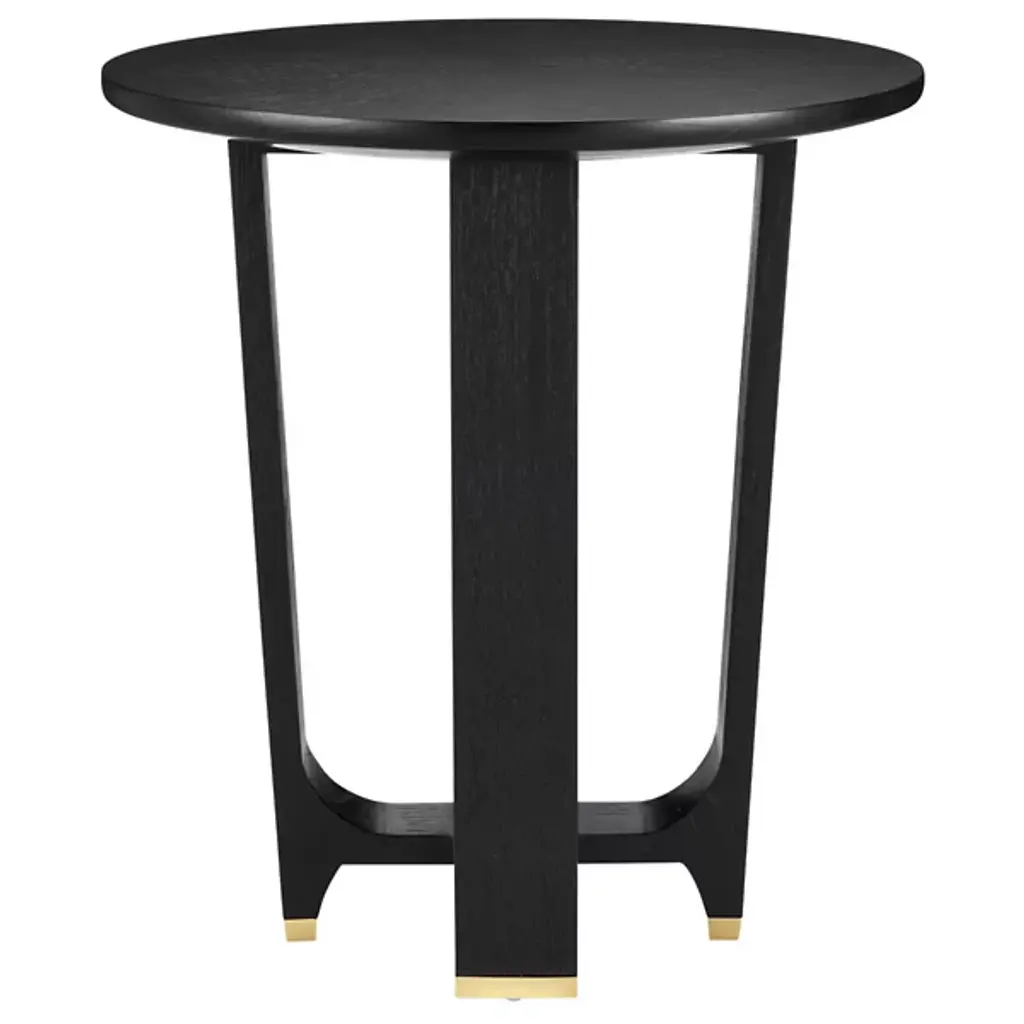 The Blake Accent Table from Currey & Company is a study in refined contrasts. Crafted from Mindi wood, its round top showcases a subtle starburst pattern that catches the eye. The table's legs curve upward from the base, creating an elegant arc that supports the tabletop. Polished brass ferrules cap the feet, introducing a touch of luster to the piece. This table's sleek profile and contemporary flair make it an ideal companion for modern sofas or as a standalone accent in entryways or corners, adding a dash of sophistication to any room.
