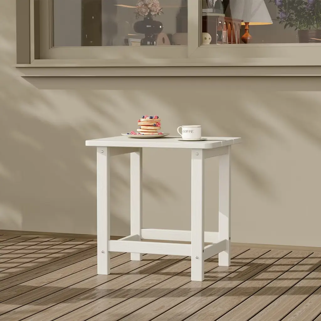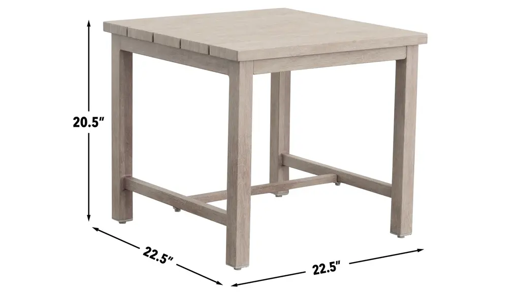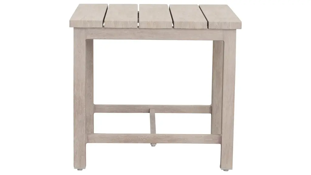 Blakley End Table is built to last and offers superior heat resistance compared to steel counterparts. Featuring a whitewashed birch look with a beautifully crafted plank top, the Blakley Outdoor End Table brings a light and fresh approach to outdoor design, adding a touch of natural charm to your outdoor space. Its dual stretchers provide added stability and durability, ensuring it will last for years to come. Adjustable levelers on the bottom of the table legs allow for easy stability on uneven floors, making it easy to enjoy drinks, snacks, or your favorite book without worrying about spills or wobbly furniture. Upgrade your outdoor living space with the Blakley Outdoor End Table and add functionality and style to your patio or deck. Whether you're lounging on the Blakley Outdoor Sofa or enjoying a peaceful moment on the Blakley Outdoor Lounge Chair, this end table is the perfect complement to your outdoor seating area.