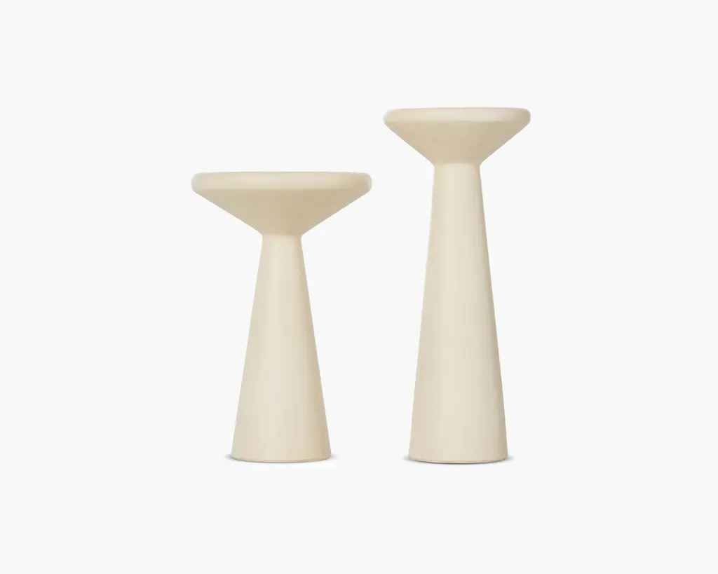 Concrete accent tables stagger in height for a wide variety of options. Makes for an impactful pedestal for display or handy extra surface beside a sofa. Parchment white in color for a clean, industrial-spun vibe. Tall table measures 8.5"D x 20"H. Shorter table measures 10.5"D x 16.5"H. 10.5"W x 10.5"D x 20"H Shipping box: 27"W x 14"D x 24.75"H, 65lbs Receives White Glove delivery
