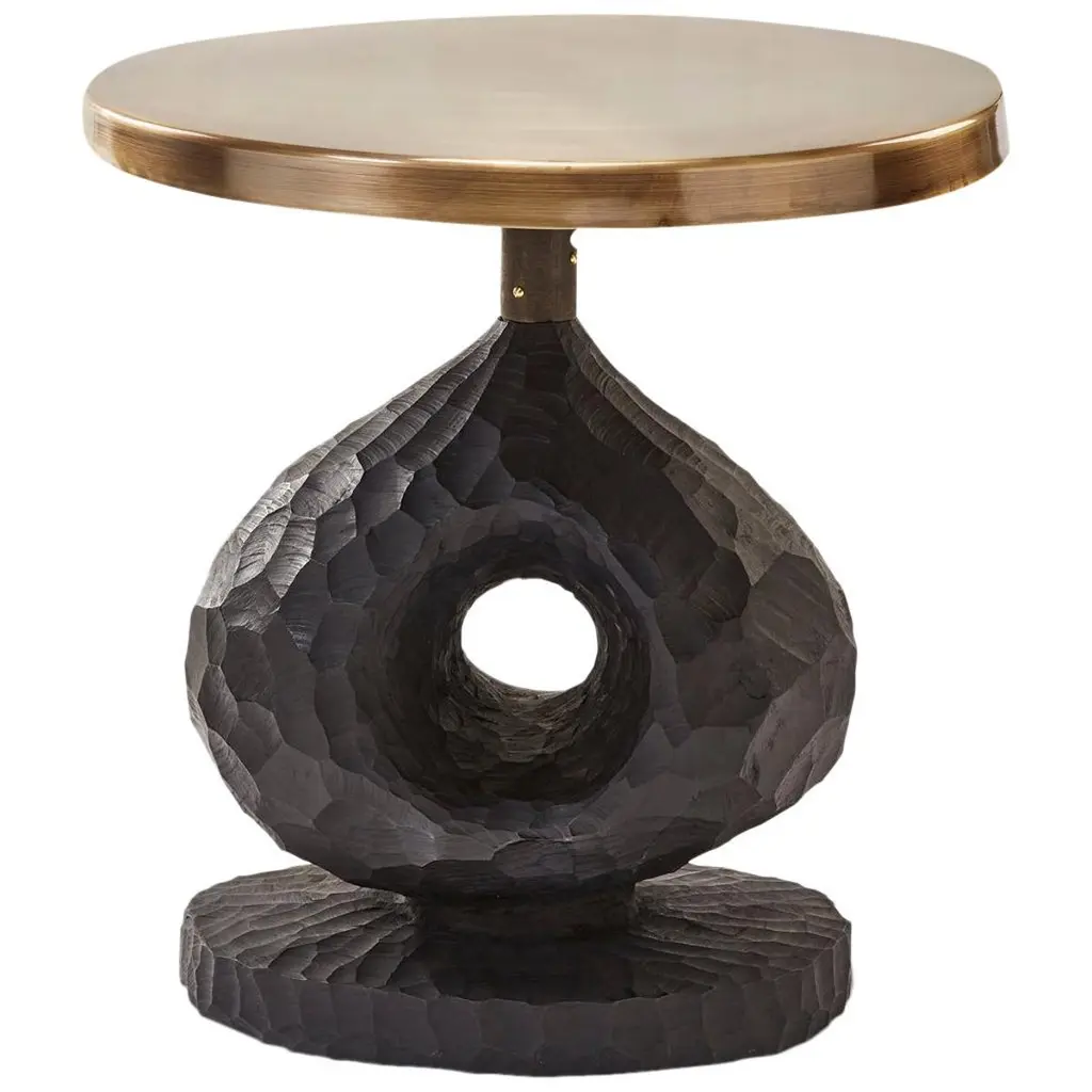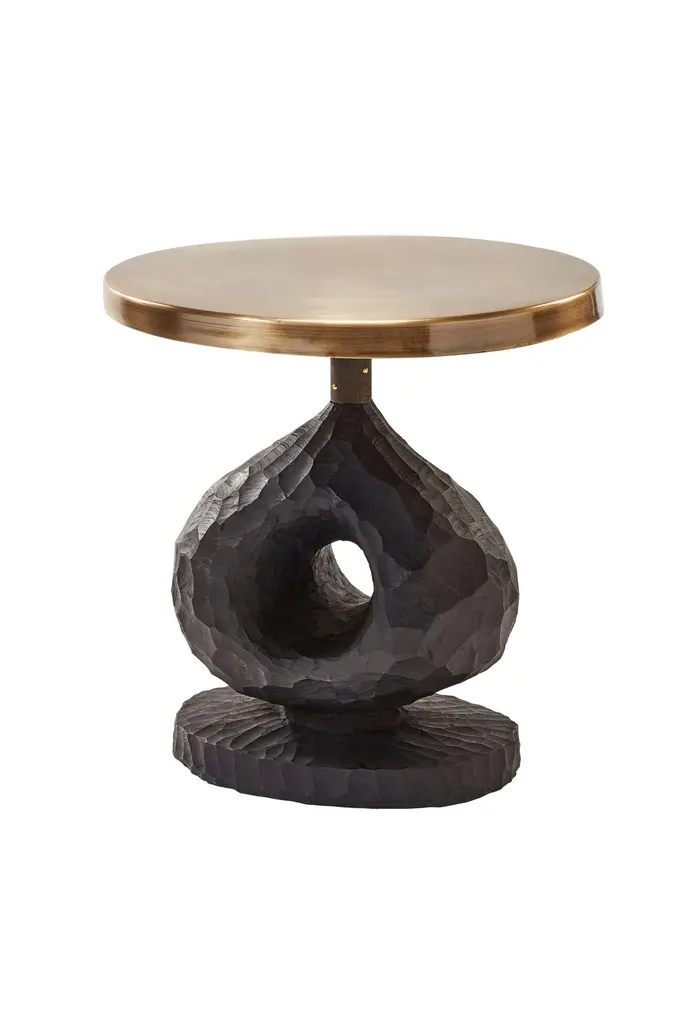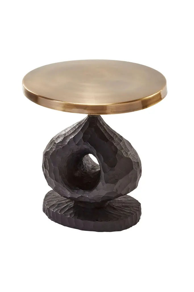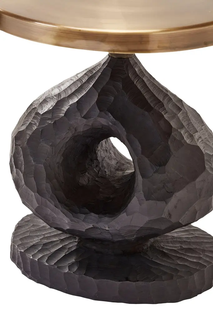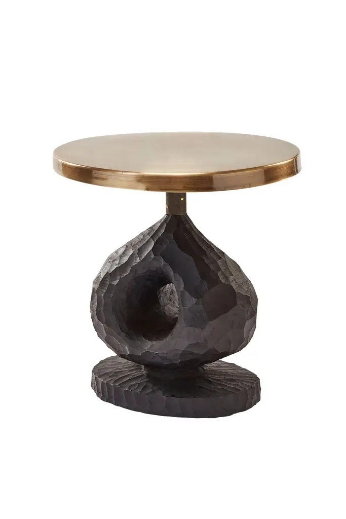 Blessing Side Table by Egg DesignsDimensions: 60 L X 60 D X 65 H cm Materials: Chiseled Alien Wood, Bronze Coated SteelFounded by South Africans and life partners, Greg and Roche Dry - Egg is a unique perspective in contemporary furniture inspired with a soul that’s deeply rooted in the African continent.We believe Egg has a distinctive African design dialect.We dream that our products will not only be judged by their function and form, but by the beauty of their eternal narrative.In everything we create we must answer the question, “Is it Egg enough?”Egg, is a spirited blend of heritage, passion, meaning and African soul. It stands the test of time. It’s curiosities that make you smile. It’s love and truth that can be seen from afar and equally found in the minutest details. That’s why every piece we craft comes from Africa and carries within it a part of the African soul. We’re a melting pot of tribal craft, African heritage and modern luxurious expression.“If it’s not Egg enough, it’s not worth doing!”We have widened the prism of contemporary African design in Modern Antiques, high-end Furniture, lighting and custom interiors inspired by an African provenance for a modern, international customer.