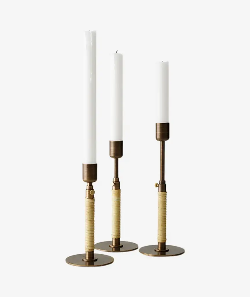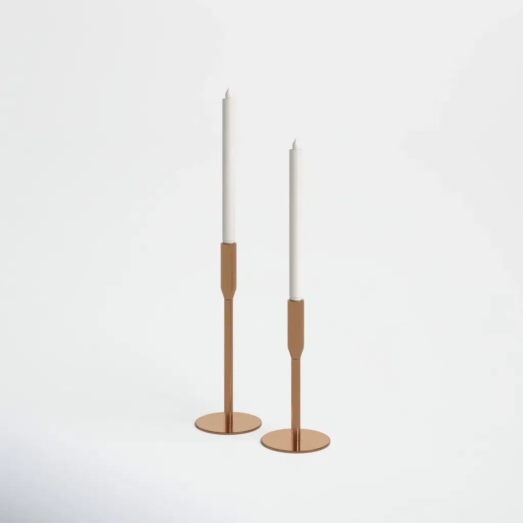 Molded in sand, our abstract brass Blobby Candle Set embodies the fluidity of molten metal. The flicker of candlelight plays across its organic curves, making it a sculptural centerpiece on a shelf, side table, or as a bold statement in the center of a dining table.