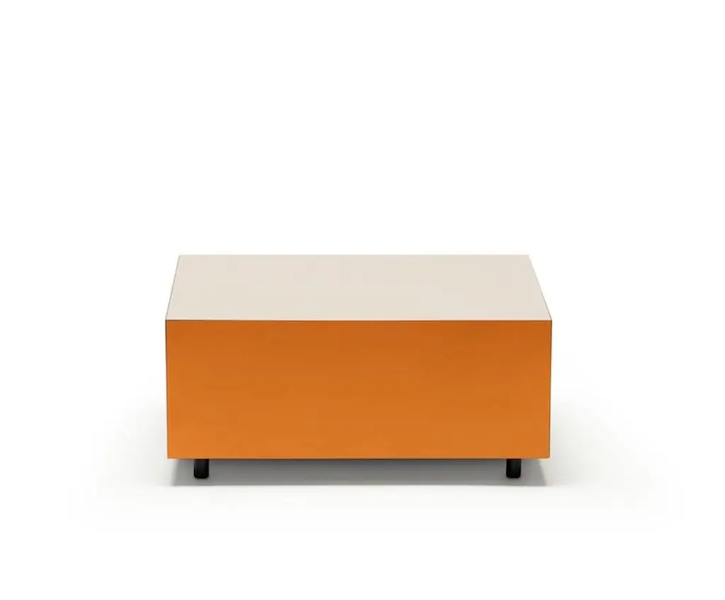 Treating colour as a material, Bloc side tables are based on the idea of recreating a hand-drawn cube, using different tones and shades to suggest an optical illusion.Hidden in the plywood structure is a drawer with a soft-open mechanism, disguised by theblock colours of the outer surfaces. Available in three sizes, the design is highly versatileand can add playfulness and a compact graphic character to a wide range of interiorenvironments, from the home to the office.The BLOC coffee tables are colourful plywood boxes in contrasting high-pressure laminatefinishes. They come with black dowel feet as standard and can be paired with castorwheels (optional) and a storage soft-open drawer (optional).DimensionsSmallL640mm × D450mm × H290mm, 20kgSquareL850mm × D850mm × H290mm, 25kgLongL1200mm × D450mm × H290mm, 35kgMaterialsBirch plywood, high-pressure laminate, soft-close drawer slides, black stained oak (legs),stainless steel ball bearing and nylon castors (option)COLOURSBright red, burgundy, clayBottle green, pine green, signal greenGrey, burnt orange, pale greyZinc yellow, signal yellow, pale greyNotesStable, strong, versatile, and durable. Suitable for general contract use. Not suitable for outdoor use. Avoid contact with heat sources.