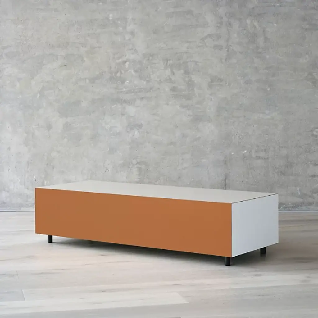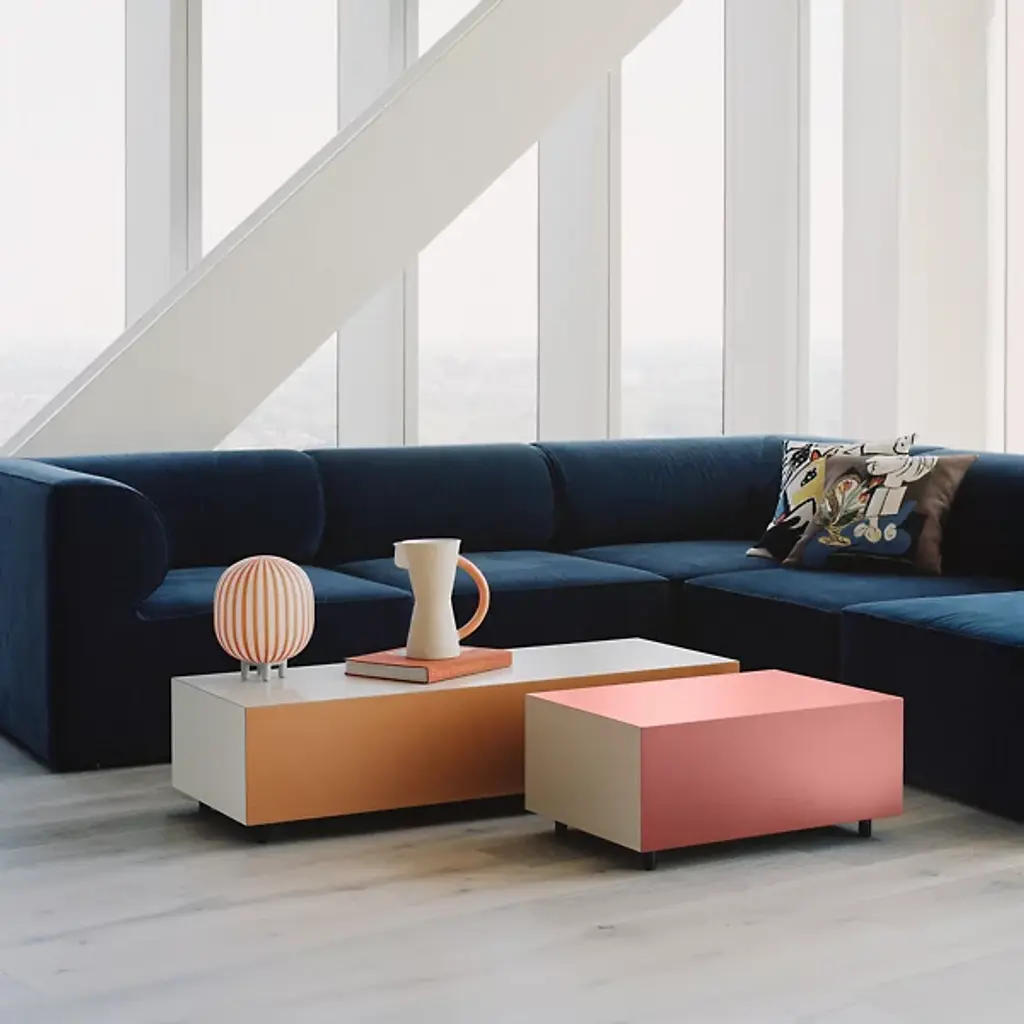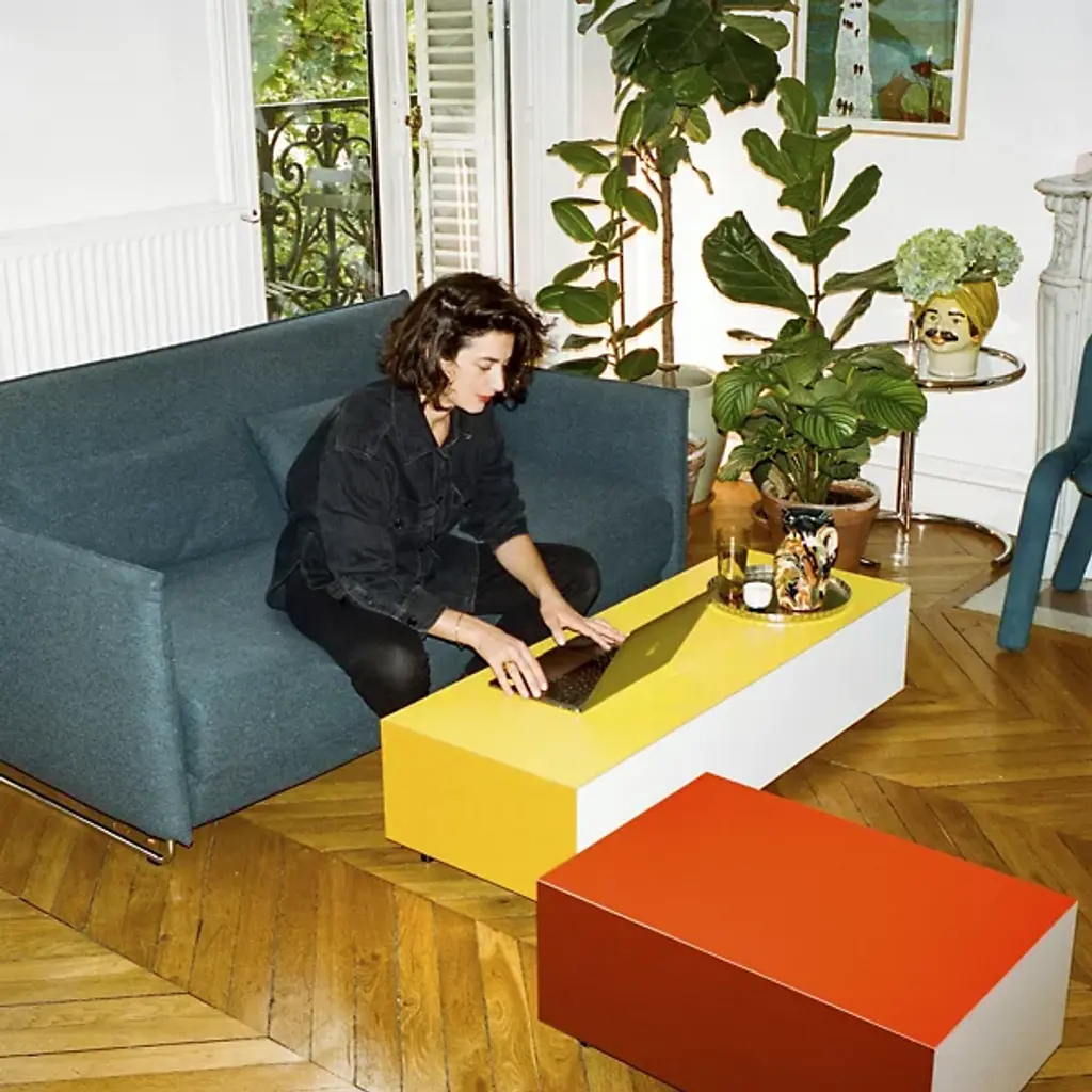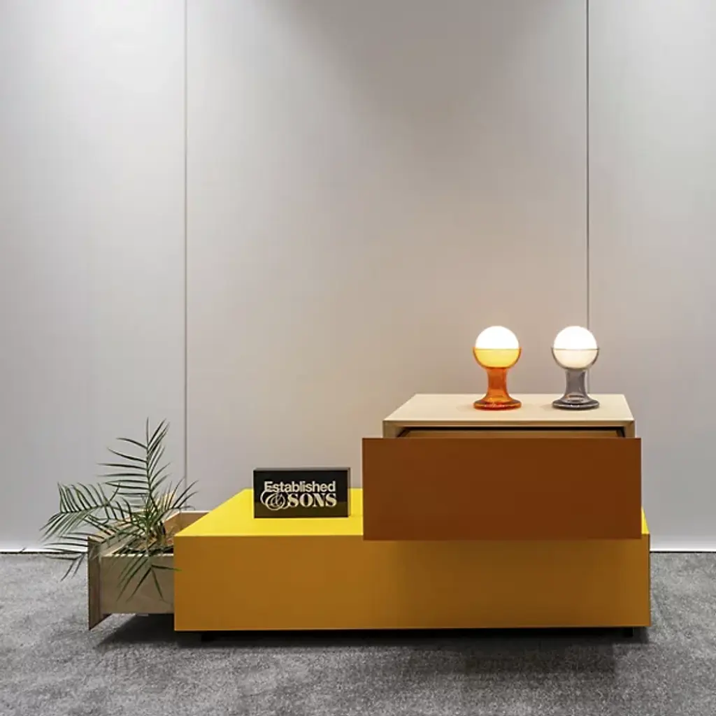 The Bloc Rectangular 1 Drawer Side Table from Established and Sons is a simple structure engineered to use color as a central material of its own. A daring and direct design created by Pauline Deltour, fashioned from birch plywood and a strong laminate set atop strong oak legs. Striking color blocks on each outer panel conceal a central drawer with soft-close slides, offering secret storage inside the cubic form. The drawer’s surface nestles into the blocky form, adding appealing simplicity and a colorful character suitable for home or office use.