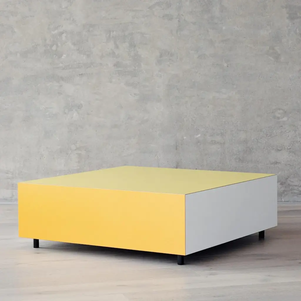 The Bloc Square Side Table by Established & Sons, designed by Pauline Deltour, features a playful, graphic design inspired by hand-drawn cubes. Constructed from birch plywood with high-pressure laminate finishes, it blends vibrant colors with a hidden soft-open drawer. Its compact structure makes it suitable for both home and office spaces. Deltour’s design approach focuses on treating color as a central element, challenging traditional design processes.