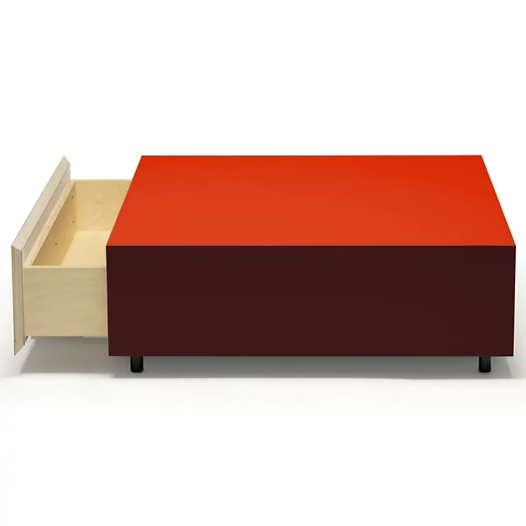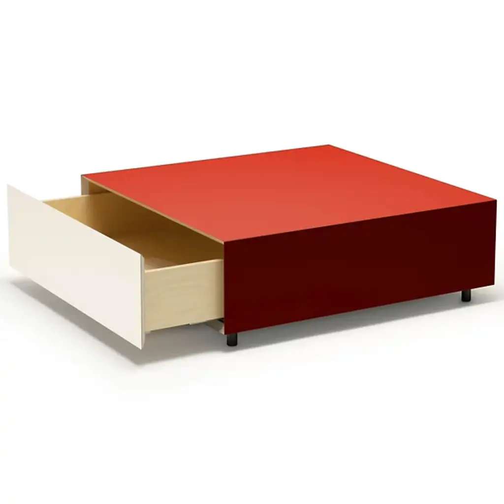 The Bloc Square 1 Drawer Side Table from Established & Sons turns color into a defining element of its structure. This bold, geometric piece features a square form designed by Pauline Deltour and made from birch plywood with a durable laminate finish, supported by sturdy oak legs. Smooth color-blocked panels conceal a discreet central drawer running on soft-closing slides, offering hidden storage. Equally adept at home and office use, its clean lines and playful hues bring a refined yet functional touch to any environment.