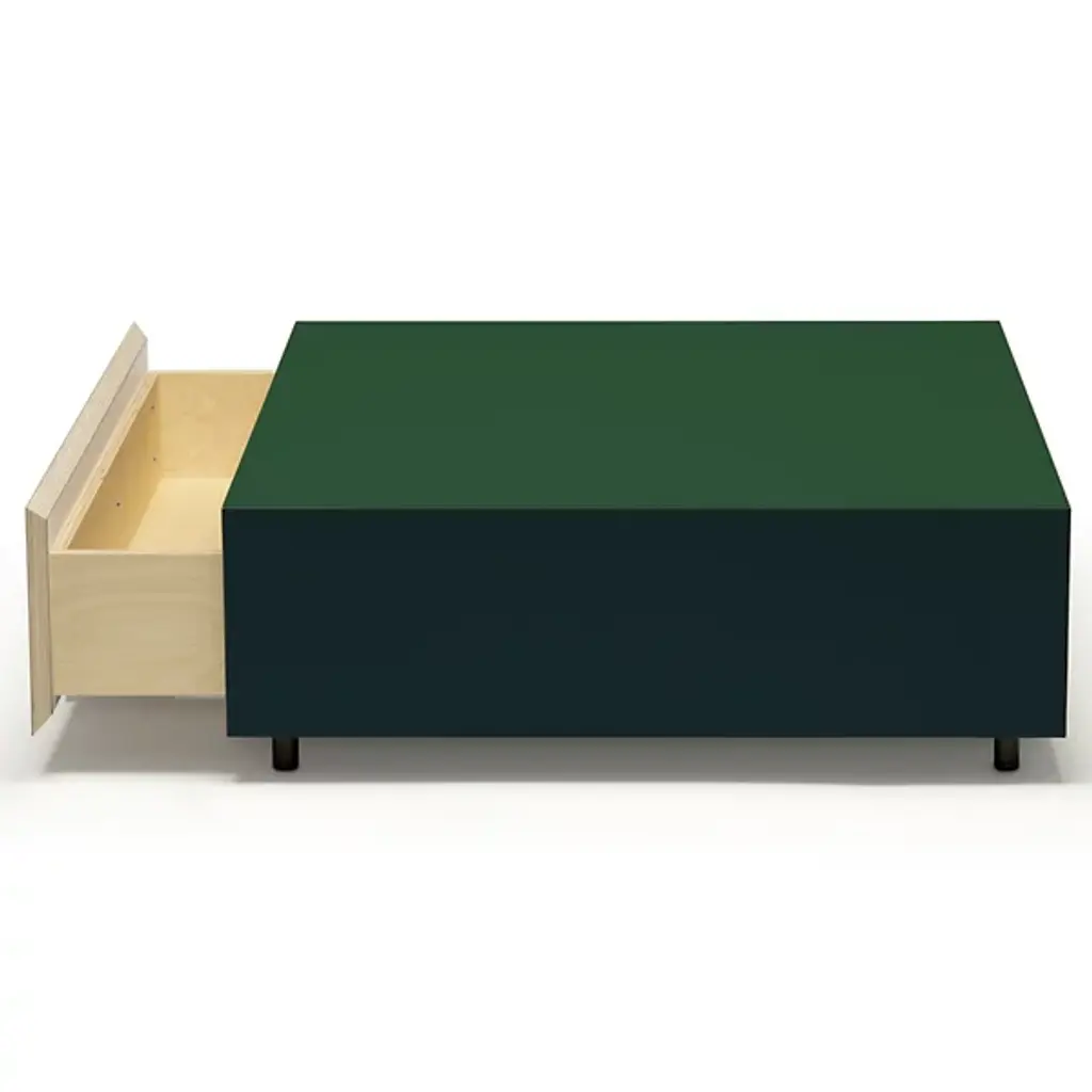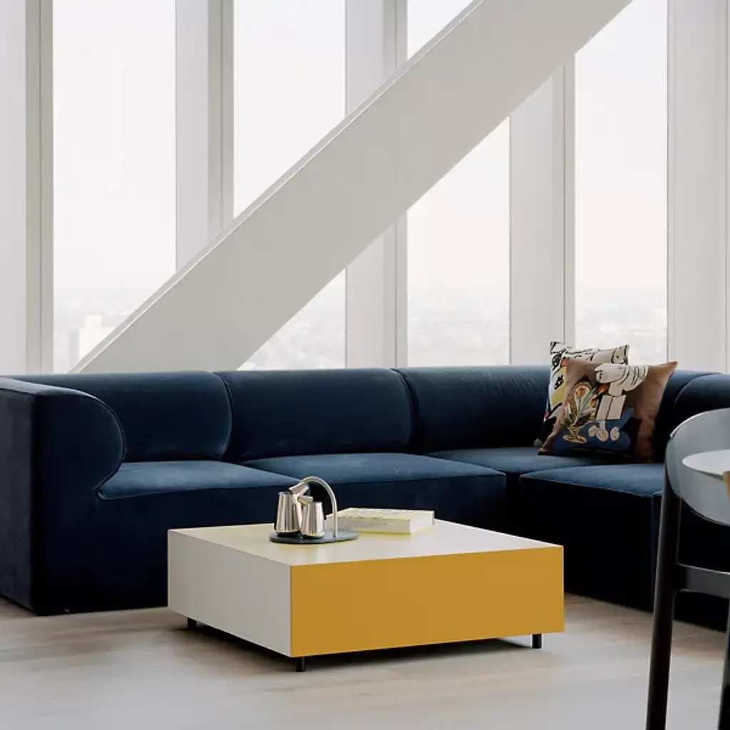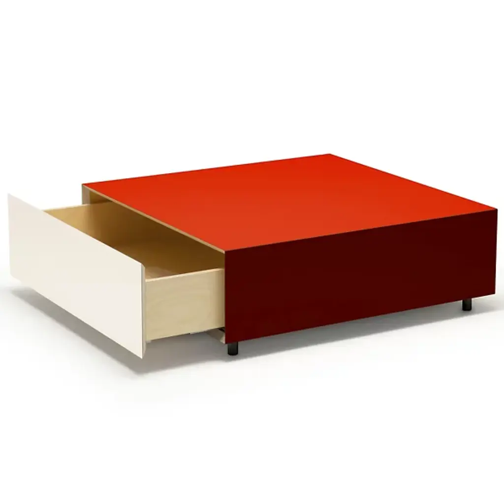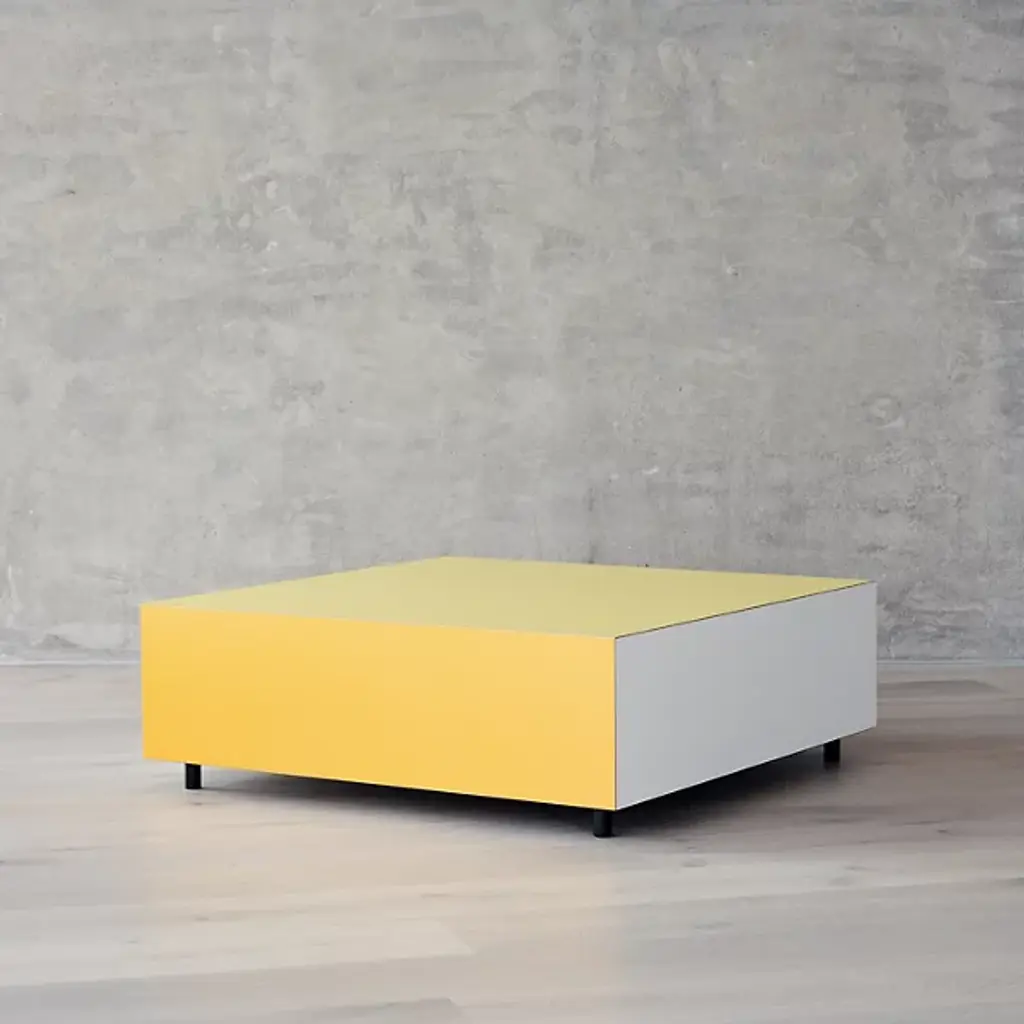 The Bloc Square 1 Drawer Side Table from Established & Sons turns color into a defining element of its structure. This bold, geometric piece features a square form designed by Pauline Deltour and made from birch plywood with a durable laminate finish, supported by sturdy oak legs. Smooth color-blocked panels conceal a discreet central drawer running on soft-closing slides, offering hidden storage. Equally adept at home and office use, its clean lines and playful hues bring a refined yet functional touch to any environment.