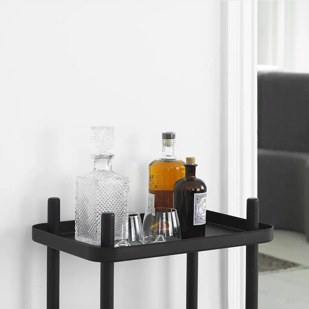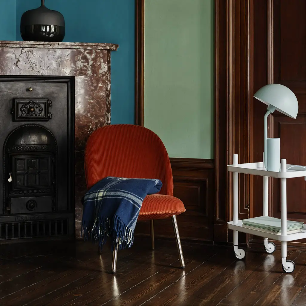 Ideal as a tea cart or end table or even nightstand, this mobile table can move in every direction. Simply pull one of the four ash wood "handles," the posts which serve as legs—on wheels. The matte color softens the effect of the steel surface, adding to its beauty. "Designing is an interaction between craftsmanship and industry, and both elements need to come together," says young designer Simon Legald, who graduated from the Royal Danish Academy of Fine Arts in 2012. His concept is realized by fellow Danes Normann Copenhagen. "Block is a simplification and modernization of the well-known tray table."