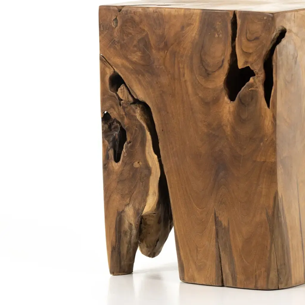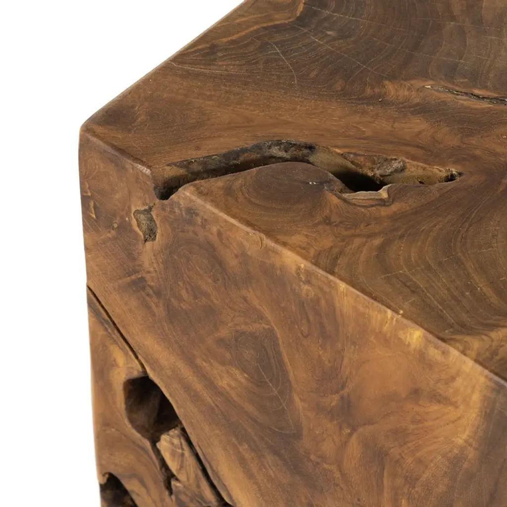 Embrace natural beauty with this solid teak wood side table. Its inherent resilience to the elements makes it perfect for indoor or outdoor use. Enjoy the unique character of the wood grain, adding a touch of rustic charm to any space.