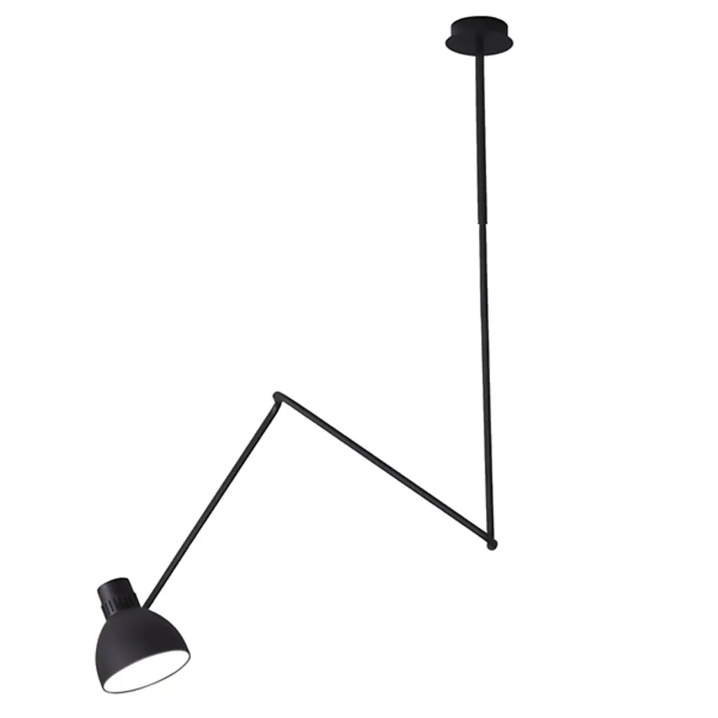 A standout in playful, artful versatility. Map out a striking trajectory of light with the articulating contours of the Blux System Adjustable Pendant from B.lux. The pendant draws inspiration from the English school style of the 70s. Its design resonates in both the minimalist and eclectic settings. Mounting with a compact canopy, a slender arm shoots down, and the angle changes with an adjustable joint. Another pair of arms connected by a joint heightens the dynamism and flexibility of the piece. The aluminum shade at the end houses the bulb inside its glare-reducing painted interior. Turn it on and receive a focused beam of clean, comfortable illumination.