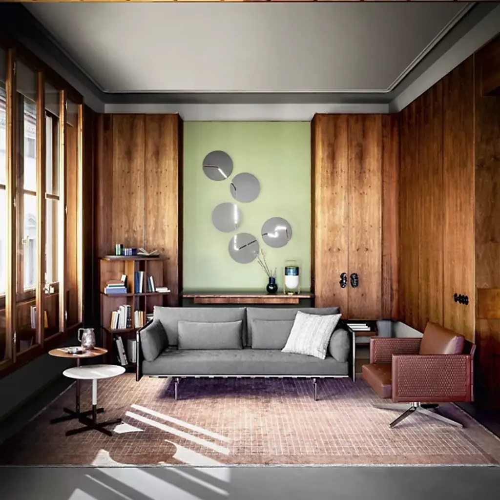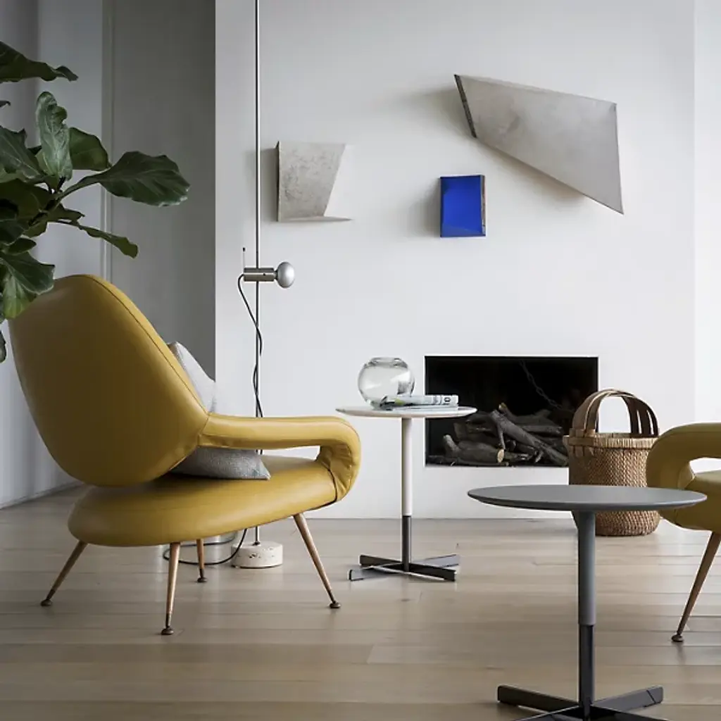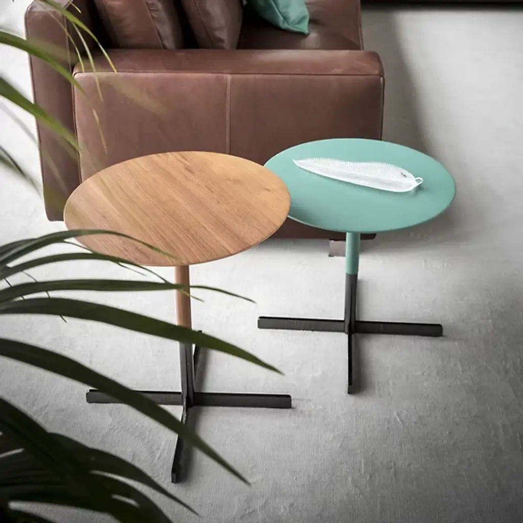 Meet the charming and expressive Bob Side Table from Poltrona Frau. An articulate, elevated creation designed by Jean-Marie Massaud, it’s designed to complete its surroundings with an inspired, elegant retro simplicity. Ascending from a four-legged base in a strong steel, Its lower matte texture contrasts well with a sleek central stem, securing a slender circular tabletop above. The subtly beveled edge of the tabletop adds a welcome touch of visual lightness to the table design, leaving the top light but looking like it can almost float. Each tabletop is unique, coordinating naturally with the metal frame below and adding a subtle jet-age lightness to its environs.
