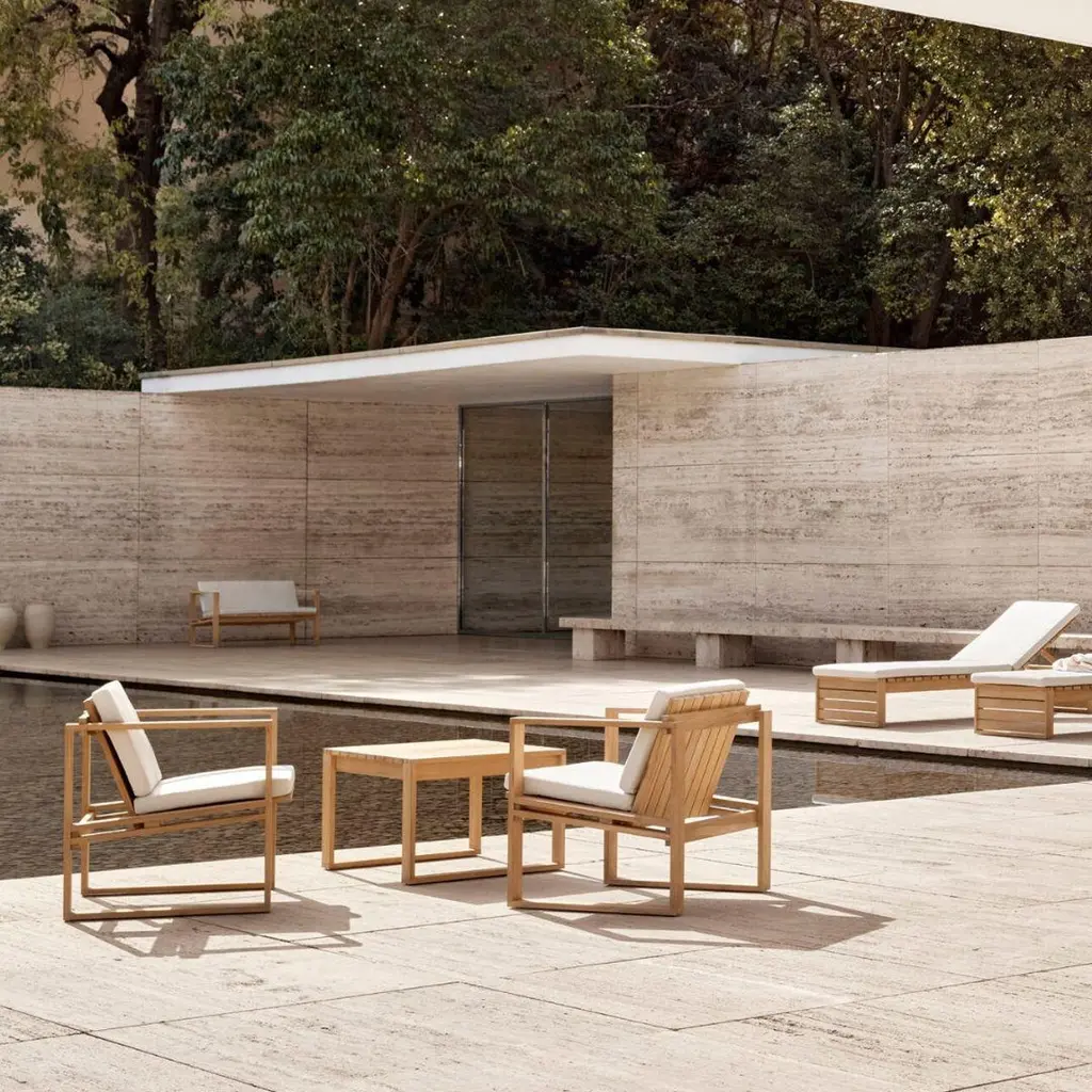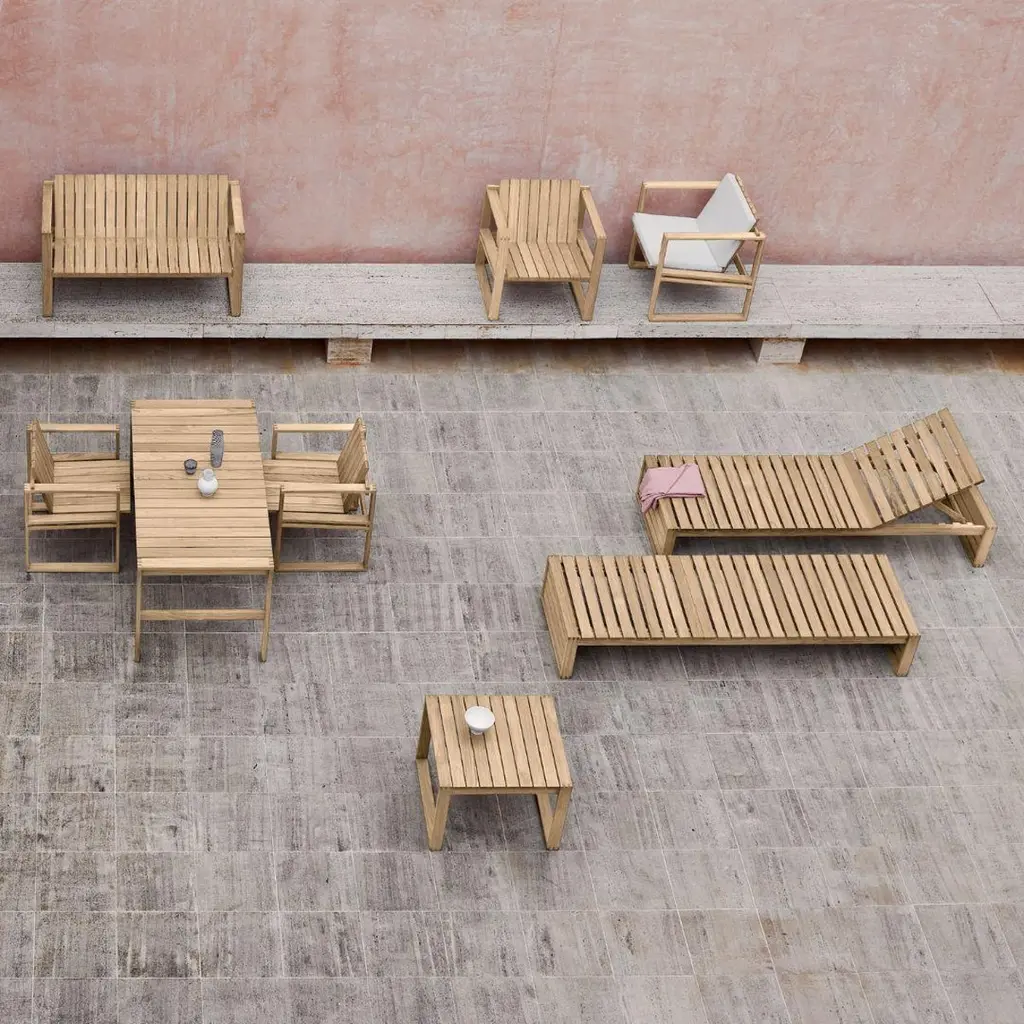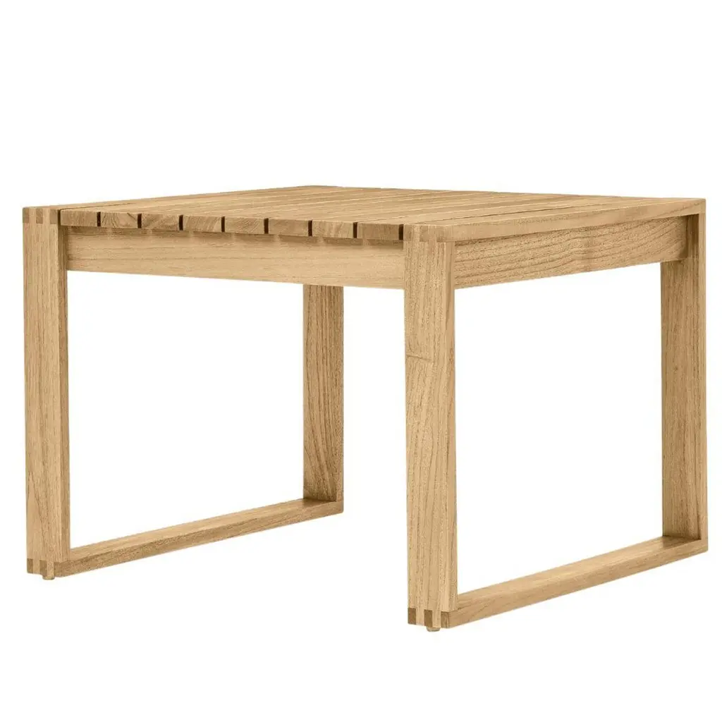 Bodil Kjaer Outdoor 'BK16' Side Table in Teak for Carl Hansen & SonThe story of Danish Modern begins in 1908 when Carl Hansen opened his first workshop. His firm commitment to beauty, comfort, refinement, and craftsmanship is evident in iconic pieces designed by such legends as Hans J. Wegner, Arne Jacobsen, Kaare Klint, Poul Kjærholm, Vilhelm Lauritzen and others. Now in its third generation as a family run business, Carl Hansen & Son maintains its legacy through skillful work with the highest quality materials, sustainably producing Danish design classics by past icons and influential new designers.Designed in 1959 by Danish architect Bodil Kjær, the 'BK16' side table is part of a collection of beautifully crafted indoor-outdoor furniture in solid teak. Its Cubist-inspired form echoes other designs in the series, all of which have a clean-lined and geometric quality. Perfectly proportioned to match the height of the collection’s lounge chair, the 'BK16' side table displays the same superior craftsmanship and striking simplicity that underpins the entire Indoor-Outdoor series. Executed in solid untreated FSC-certified teak that will develop a beautiful patina over time.Price per item. Available to order in unlimited quantities. Also available with a matching dining chair, lounge chair, lounge sofa and dining table - please see our separate listings. This listing is for the 'BK16' side table in teak.In stock lead time 2-3 weeks, out of stock lead times can add an additional 8 weeks or more. Please note that lead times, cost and inventory availability are subject to change without notice and dependent on choice of wood, finish and material ordered. For time sensitive orders, please contact us for current lead times prior to purchasing.Wood is a natural material and may vary depending on the environment (light, humidity, heat). Due to the organic nature of the material, teak and walnut vary considerably in tone and pattern within the same log. Some assembly required.Made to order.All sales are final.