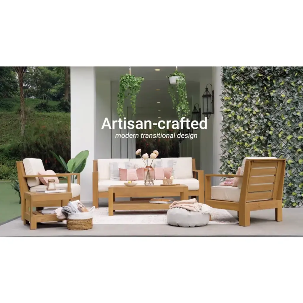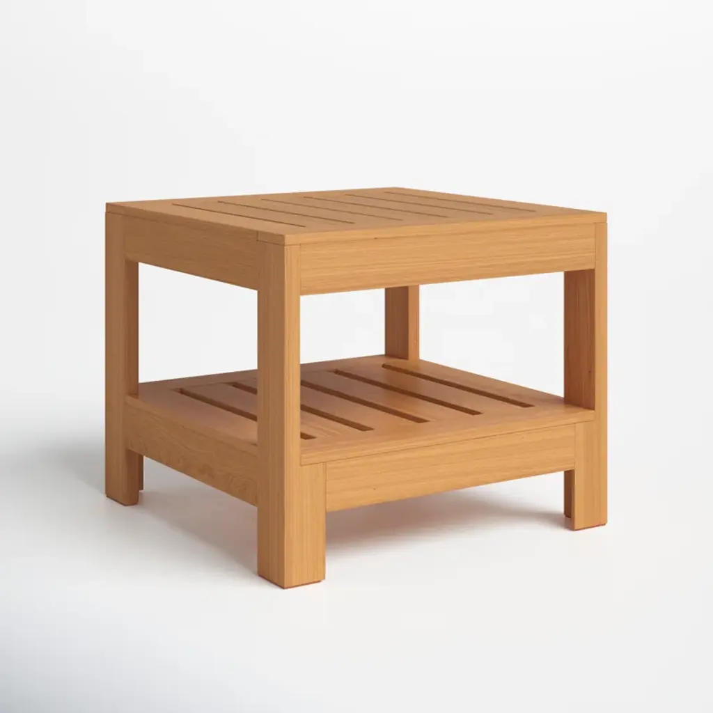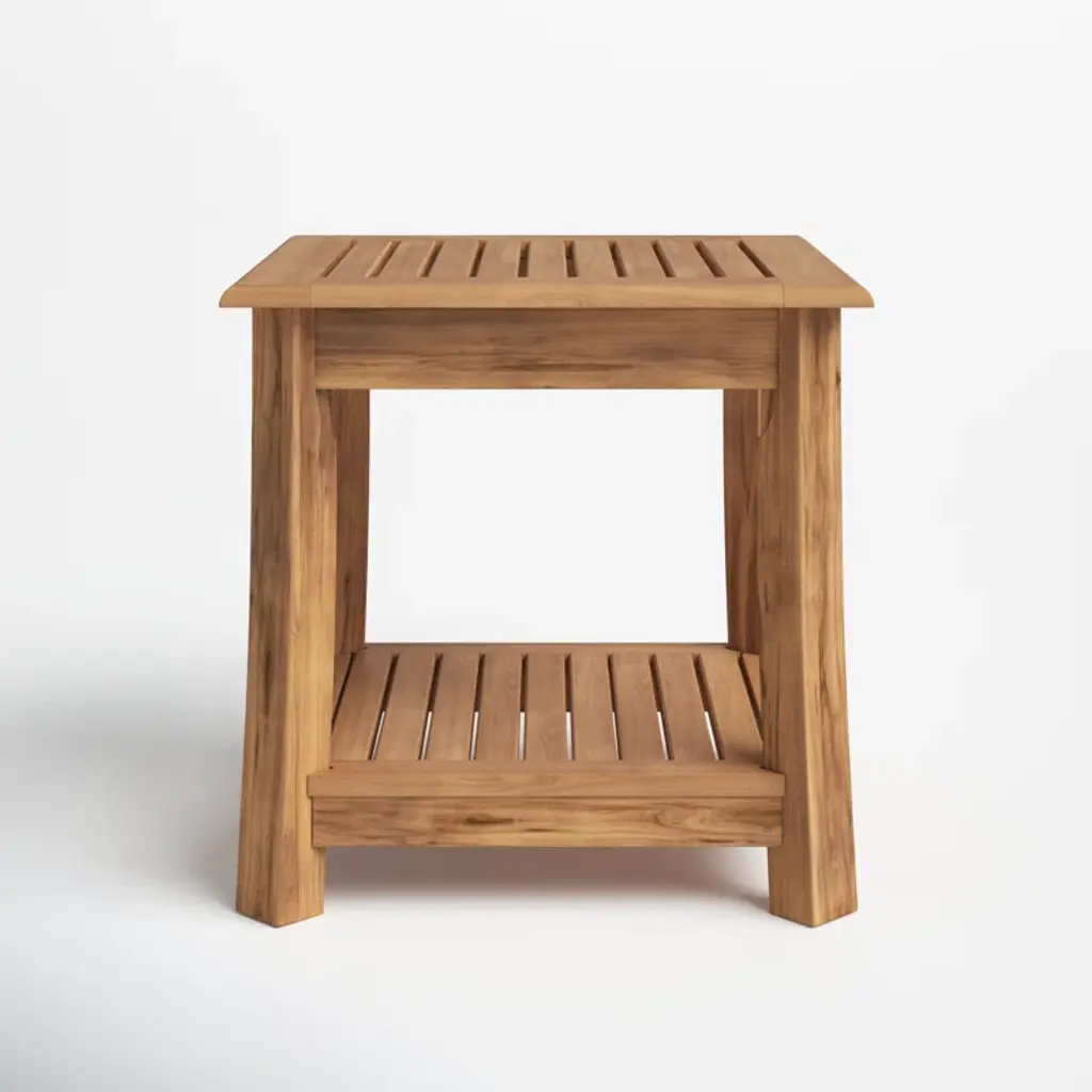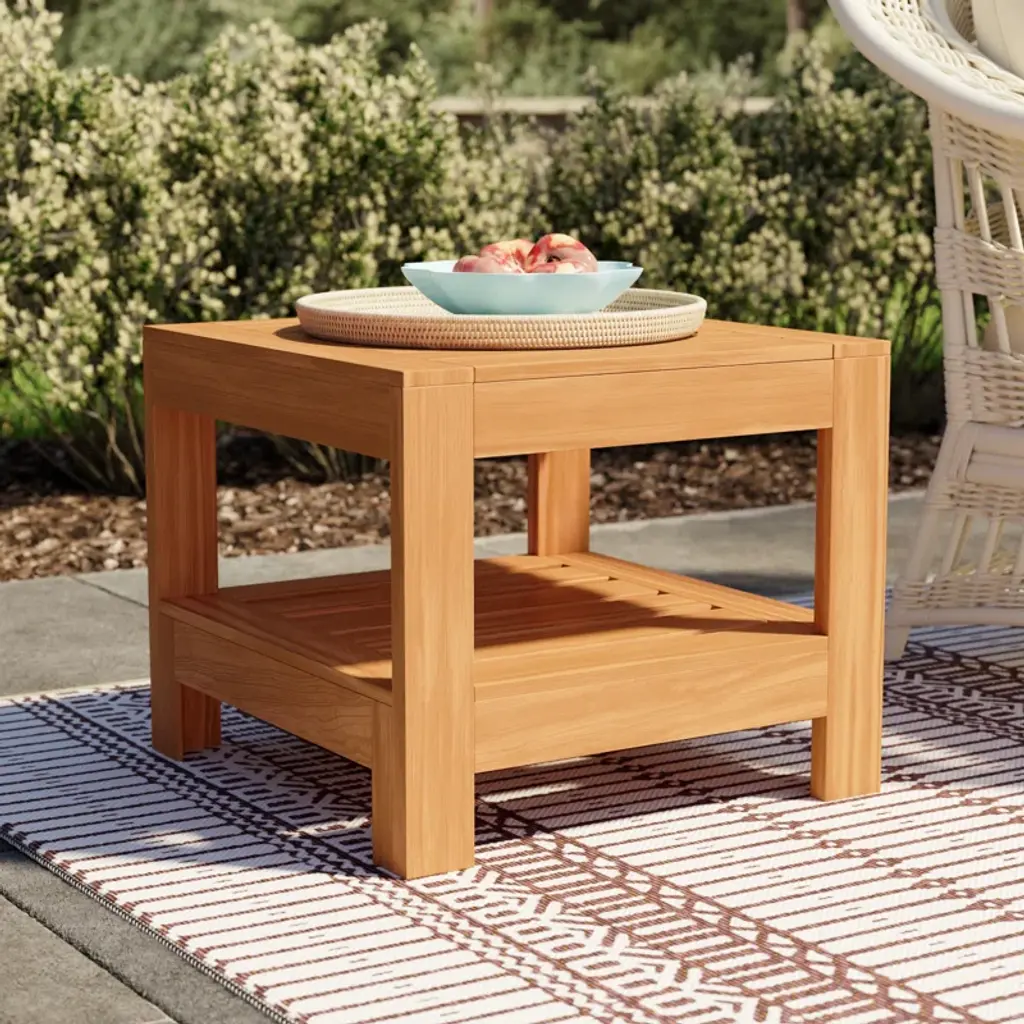 This side table gives off serious modern farmhouse vibes. Made from weather-resistant, kiln-dried teakwood with a natural finish, you can count on its durability. A wide slat design and clean-lined silhouette complete the look. Double surfaces – upper and lower – offer plenty of storage to tuck books and show off favorite family photos.