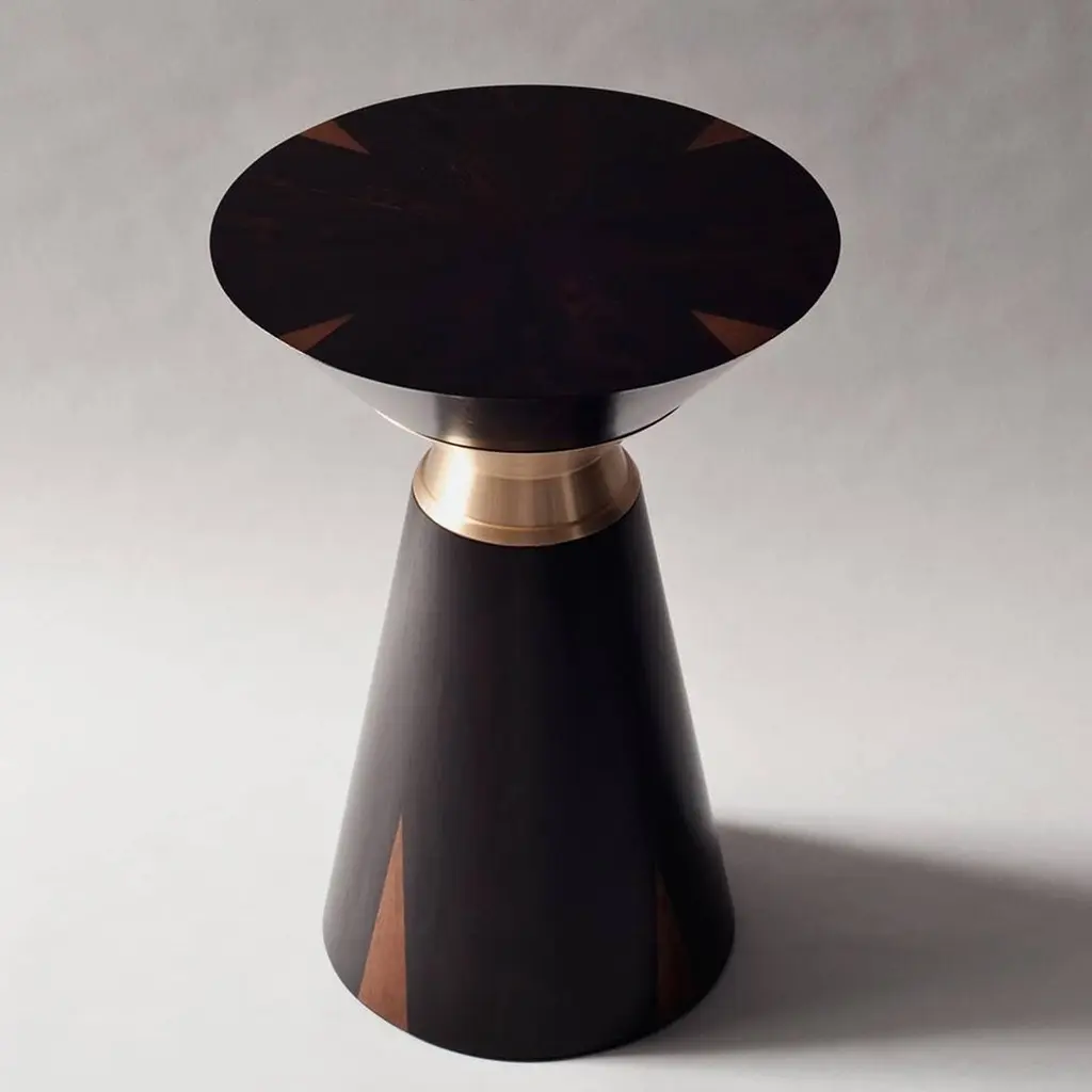 Bolo Side Table By Demuro Das In Ziricote With Solid Satin Bronze Collar