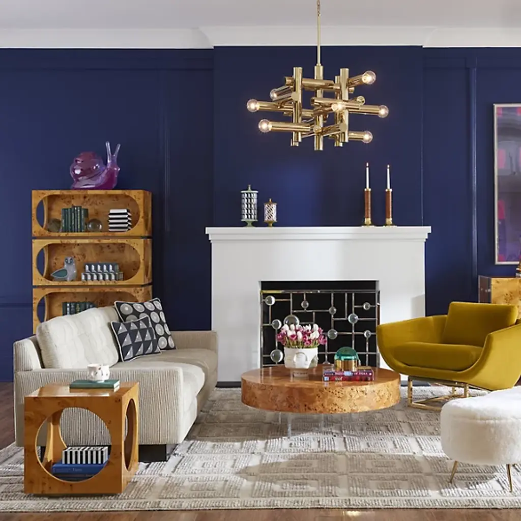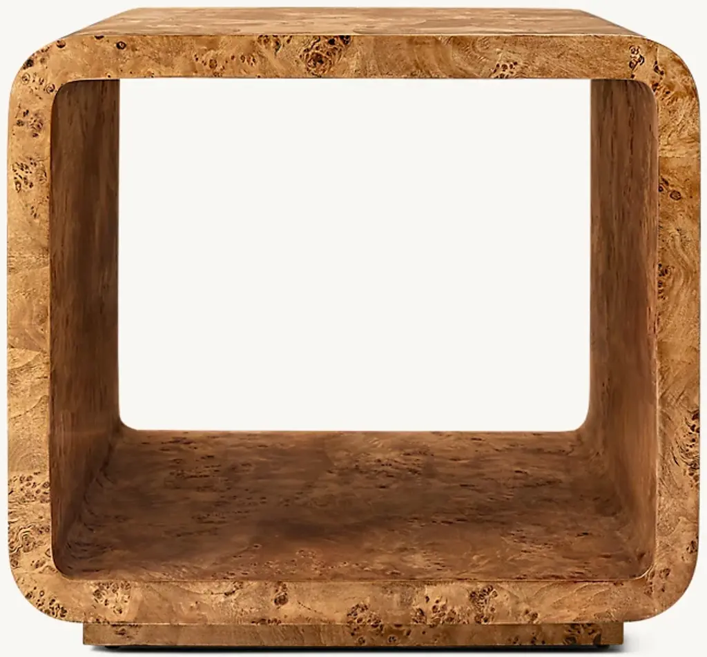 Enchant interior living spaces with the gorgeous geometric lines of the Bond Cube Accent Table from Jonathan Adler. An open geometric formation of circle-pierced Mappa wood forms a cube shape, rising from a slightly recessed base of warm brass. The circular cutouts keep the table light with strong bracing, providing openings for ample storage within. The ensemble is layered and sophisticated, though with a forthright simplicity that stands out well as a standalone item or part of a matched set.