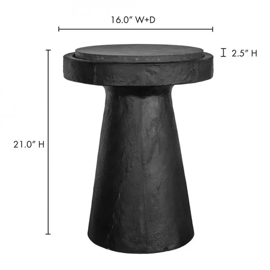Raw yet refined. The Book accent table is all about the materials, a display of cement and terrazzo combined with a dark and moody color scheme. Its sculpted cement base has a hand-crafted rustic feel, with a silhouette that calls back to antiquity. An optimal plinth for your drinks, trinkets or (naturally) books, the tabletop is made from gorgeously flecked black terrazzo. Perfectly imperfect, the Book accent table will add a bit of tactile flair to any living space.