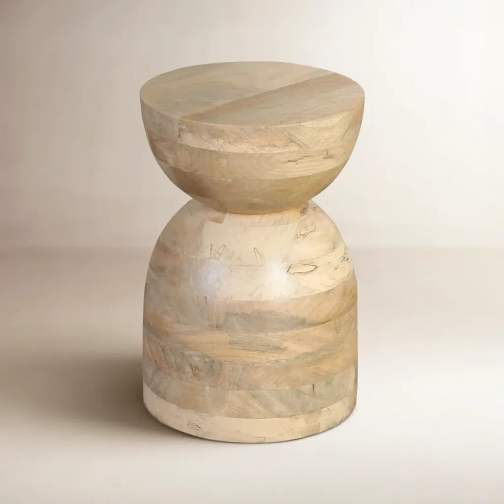Showcasing The Beauty Of Monochromatic Natural Tones/This Drink Table Features Solid Acacia Wood Pieces With Asymmetrically Placed Cutouts/Creating A Perfect Landing Spot For A Glass Or Book.