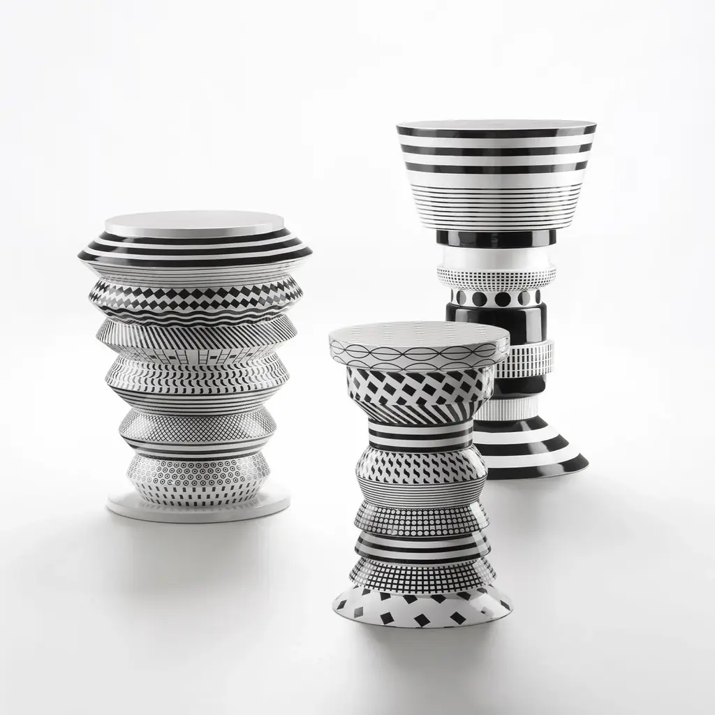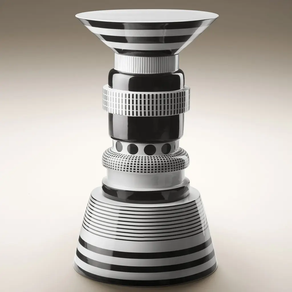Elevate your living space with the Bossanova Gilberto Side Table, a striking statement piece that harmonizes bold design with functional elegance. This table features overlapping geometric modules, resulting in a captivating silhouette that shifts with perspective. Crafted from ceramic, it boasts intricate patterns and decorations that play on the dynamic contrast of black and white, introducing visual interest and texture to any room. Perfect for pairing with modern or eclectic decor, the Gilberto Side Table serves not only as a functional surface but also as an artistic totem that brings a unique charm to your space. Its versatile design makes it suitable for various settings, whether as a bedside companion, a plant stand, or an accent piece in the living room.