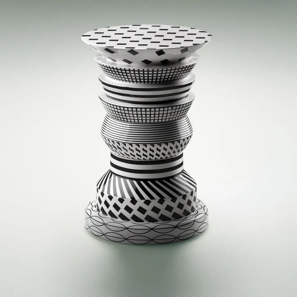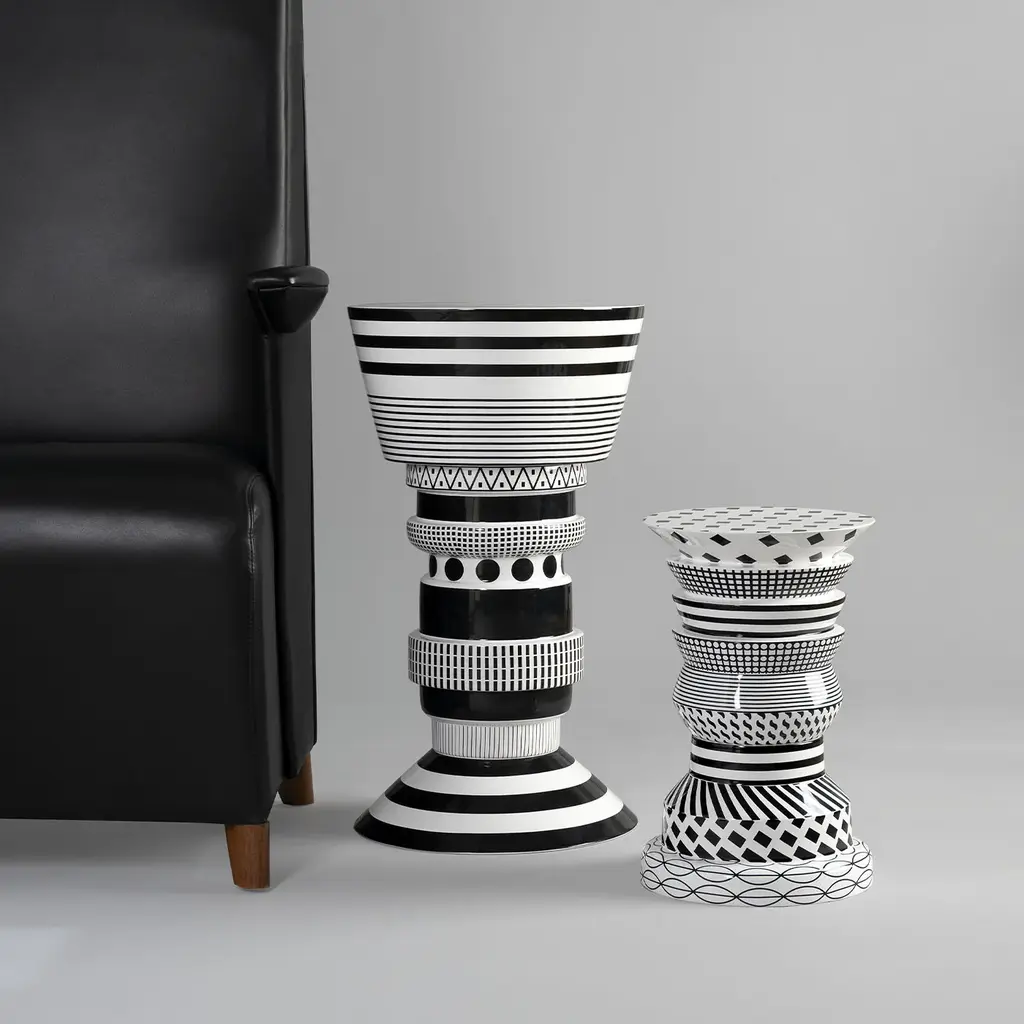 Experience a remarkable blend of art and function with the Bossanova Regina Coffee Table. This striking piece features overlapping geometric modules that create dynamic shapes, captivating the eye from any angle. The table is expertly finished with intricate black and white patterns, reminiscent of tribal totems, enhancing its visual intrigue. Crafted from premium ceramics, the Bossanova Regina coffee table seamlessly integrates into a variety of modern decor styles, serving as both a practical surface and a stunning focal point. This medium-sized table combines form and functionality, making it an ideal addition to any living space while showcasing bold design sensibilities.