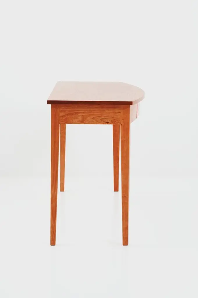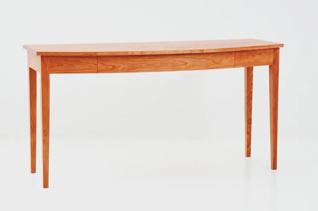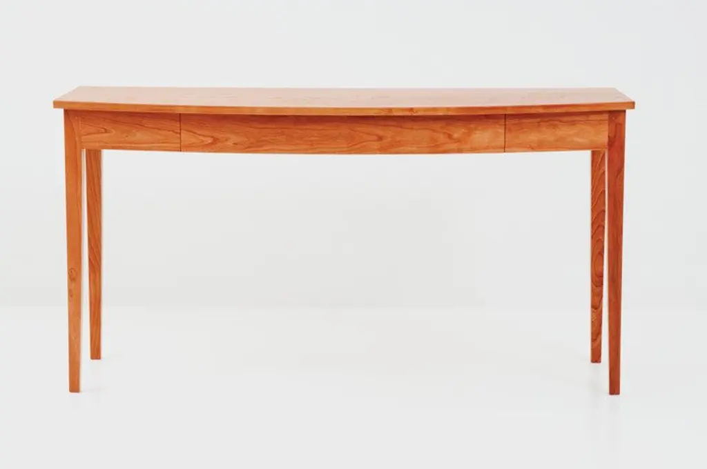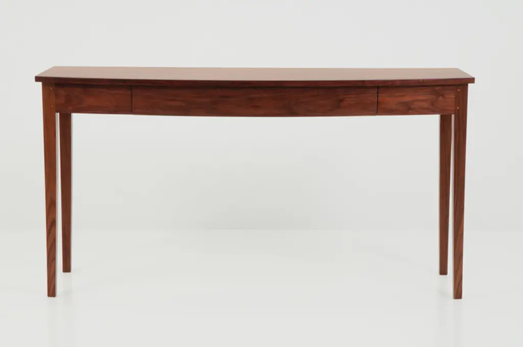 The versatile Bowfront Table adds a graceful presence to any entryway, dining space, or bedroom. Inspired by simple forms, this supremely functional table includes the option of a concealed front drawer for storage of small items. This tables striking tapered legs and solid wood top makes a satisfying statement while keeping a light presentation.