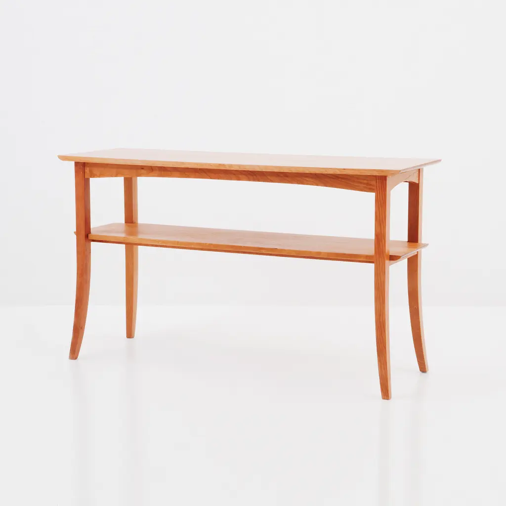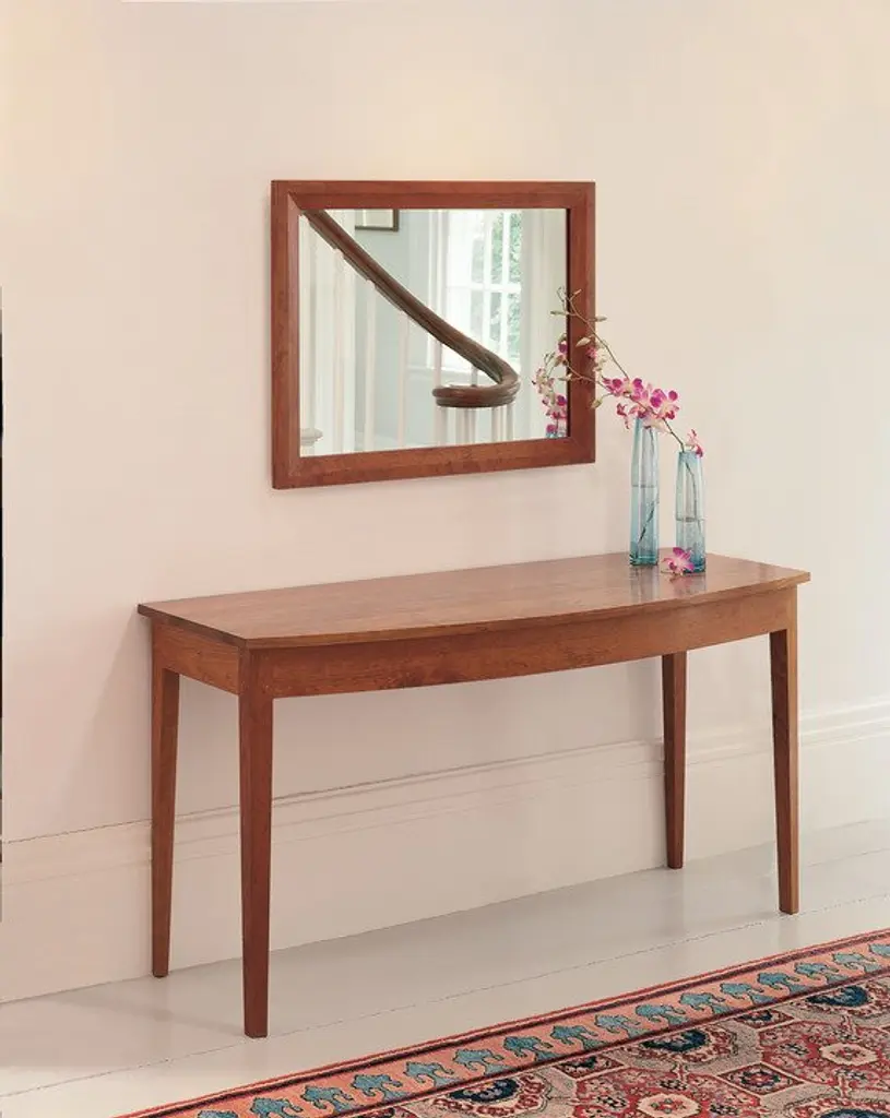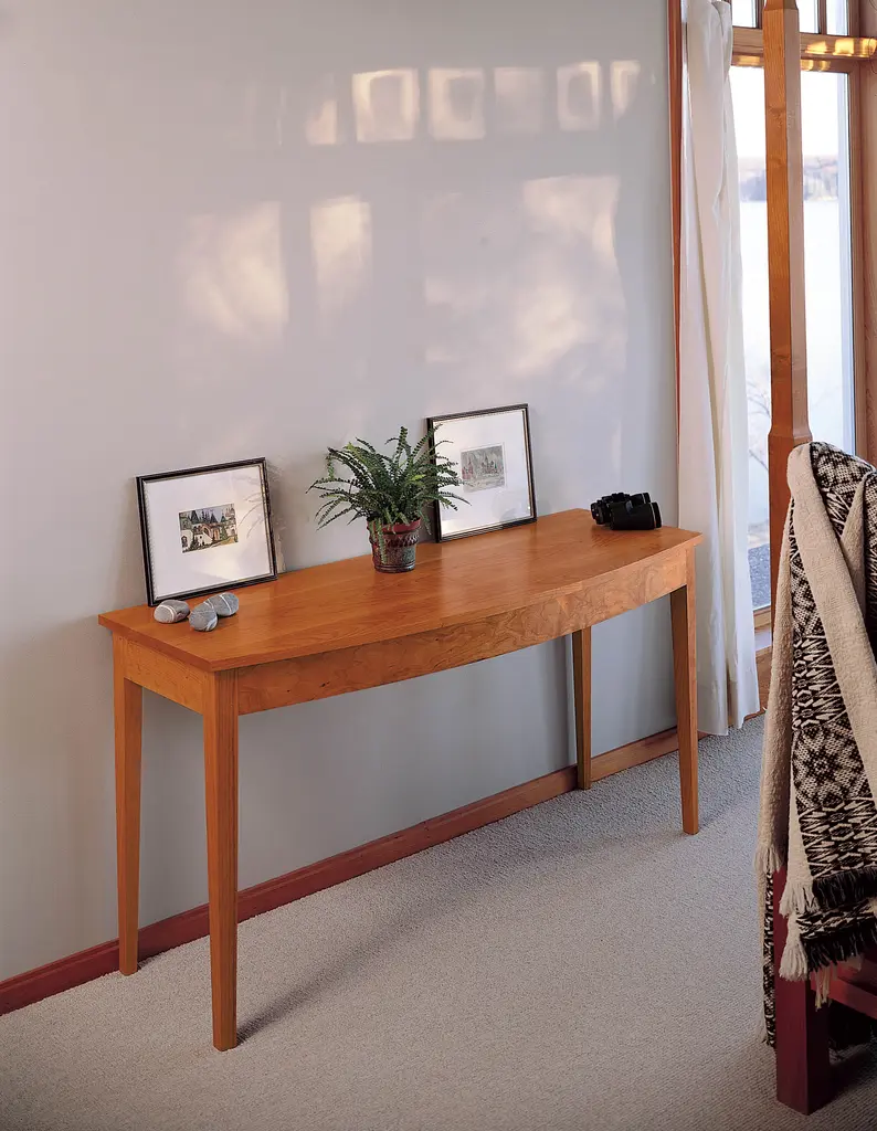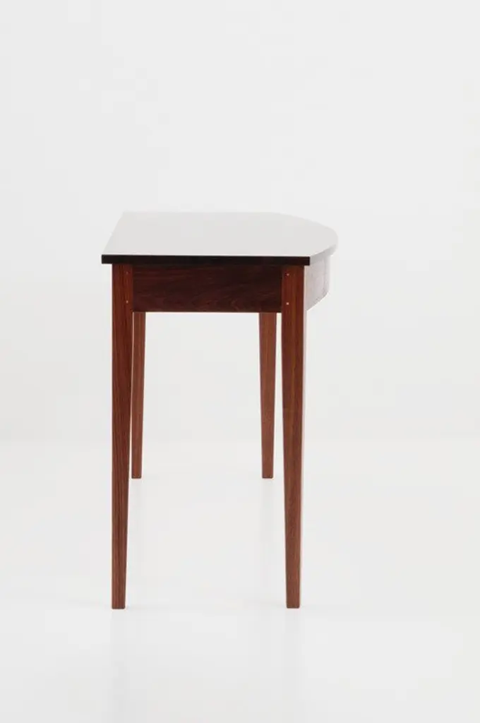 The versatile Bowfront Table adds a graceful presence to any entryway, dining space, or bedroom. Inspired by simple forms, this supremely functional table includes the option of a concealed front drawer for storage of small items. This tables striking tapered legs and solid wood top makes a satisfying statement while keeping a light presentation.