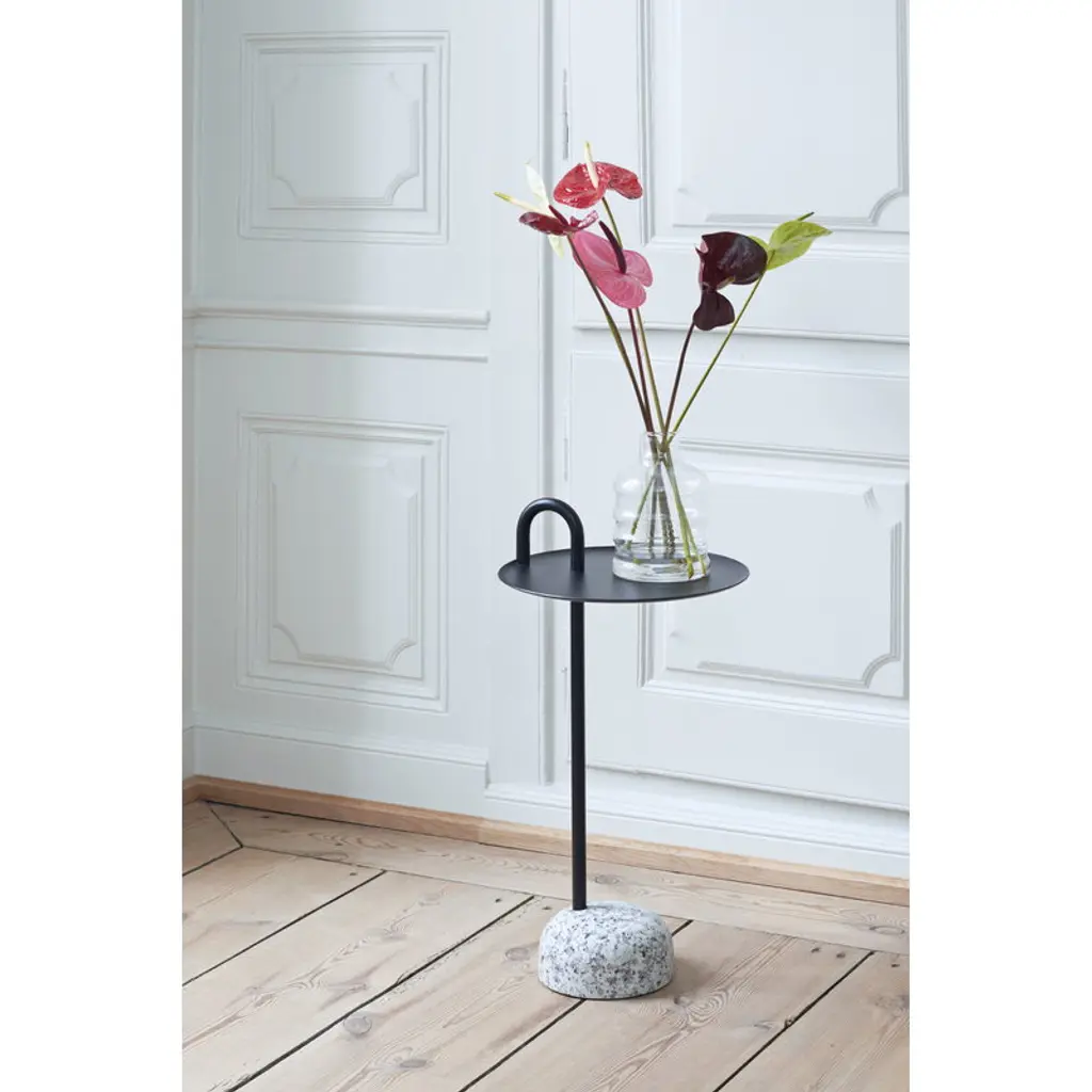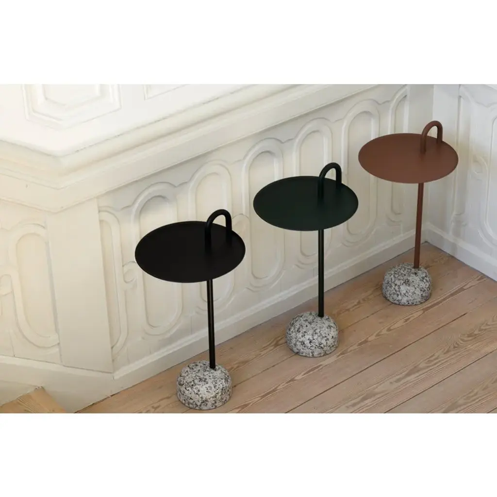 Bowler is a small round table designed by Shane Schneck for HAY. The table’s appearance is characterized by a sturdy granite base as well as a distinctive handle on the table top. Growing out of the base, the table’s stem extends upwards through the tray-like table top, creating a curve that doubles as a practical handle. The compact side table is ideal for smaller space and available in several colors.