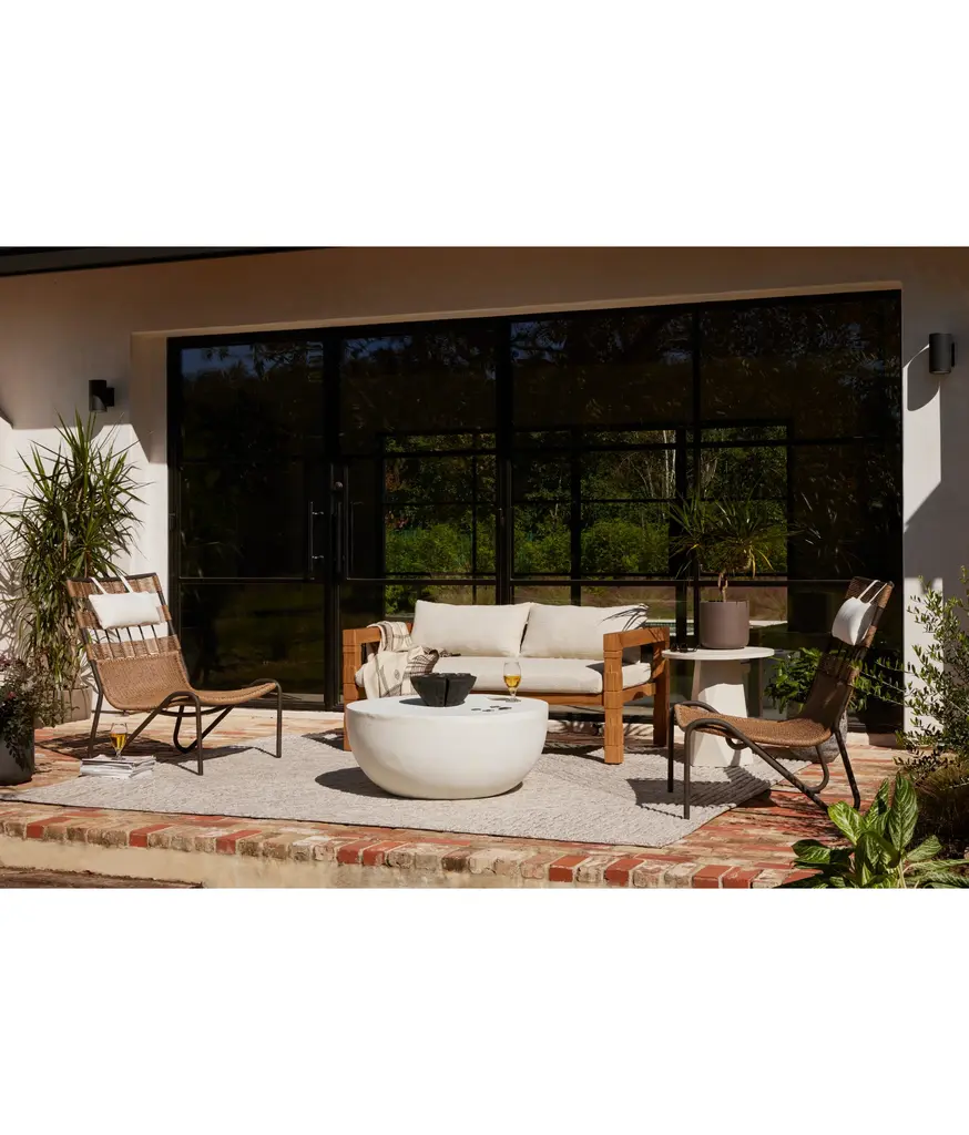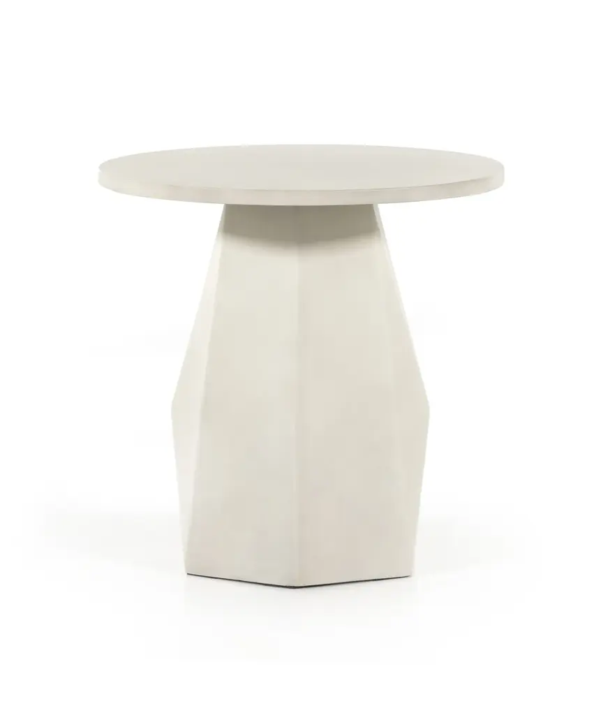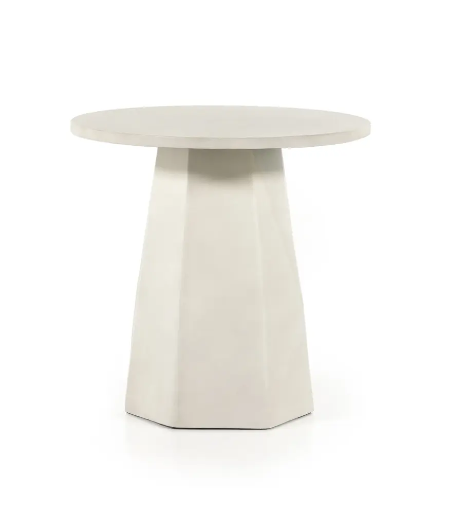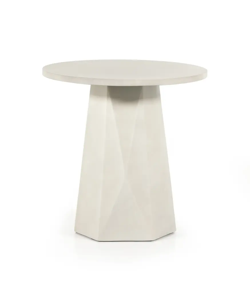 White-finished concrete forms a faceted base for impact from every angle. A rounded top is ready to make an organic statement indoors or out. Cover or store inside during inclement weather and when not in use.