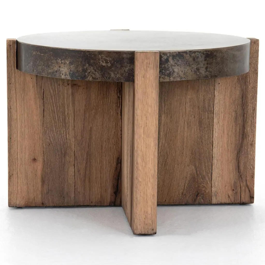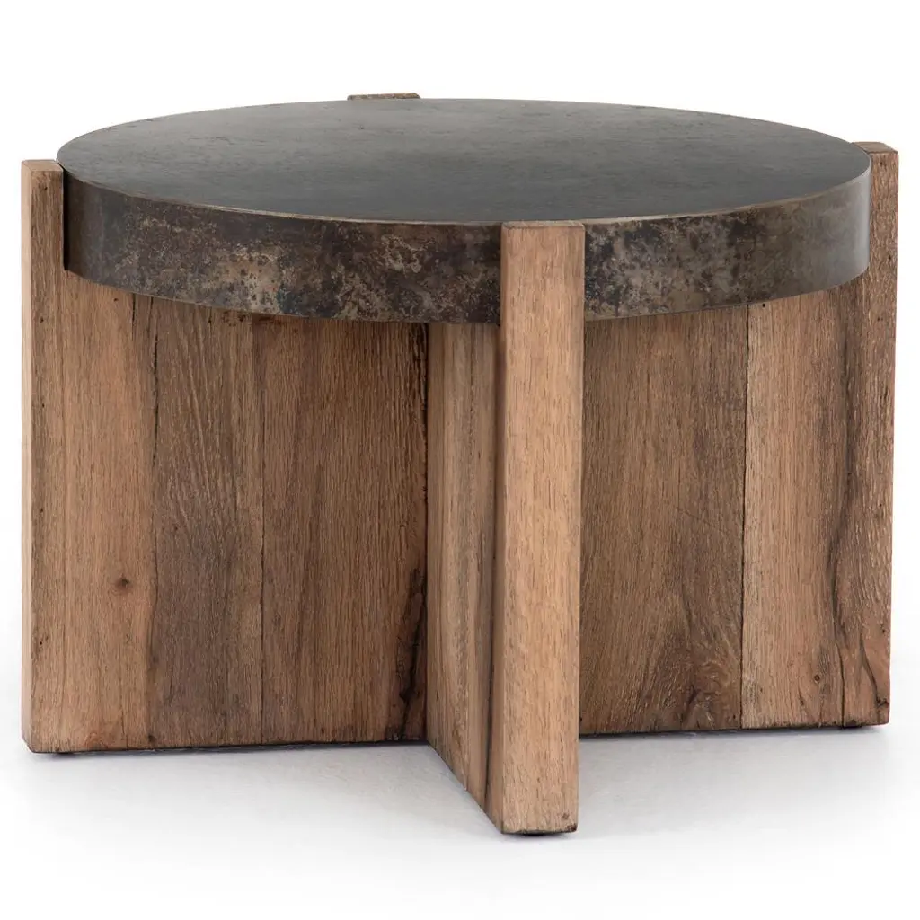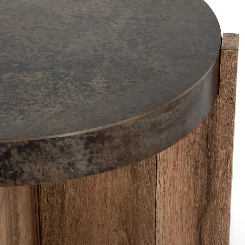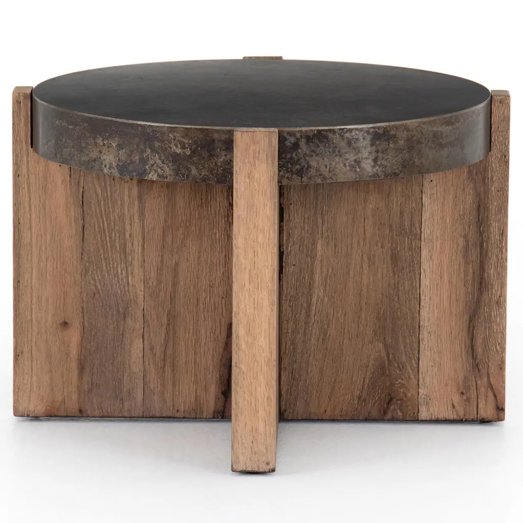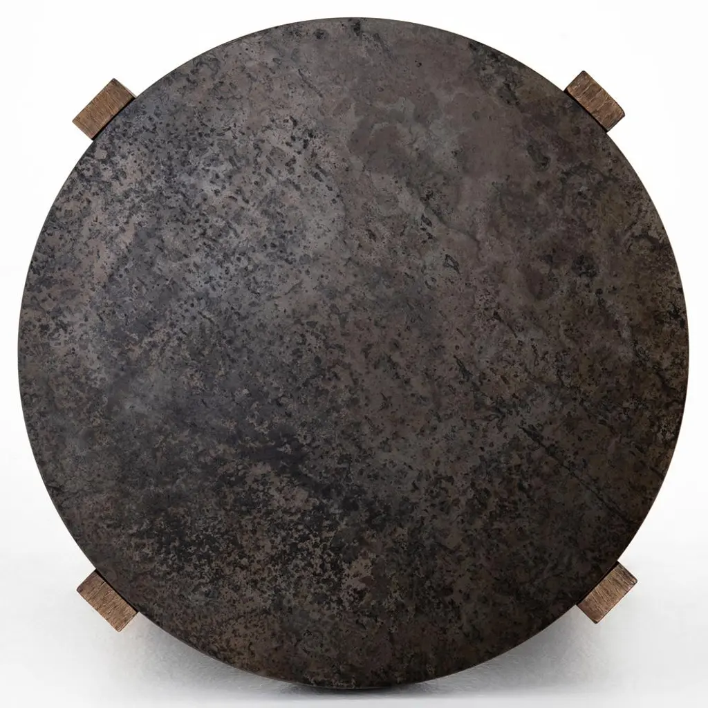 Brandon Rustic Lodge Black Iron Top Brown Oak Wood Round End Table