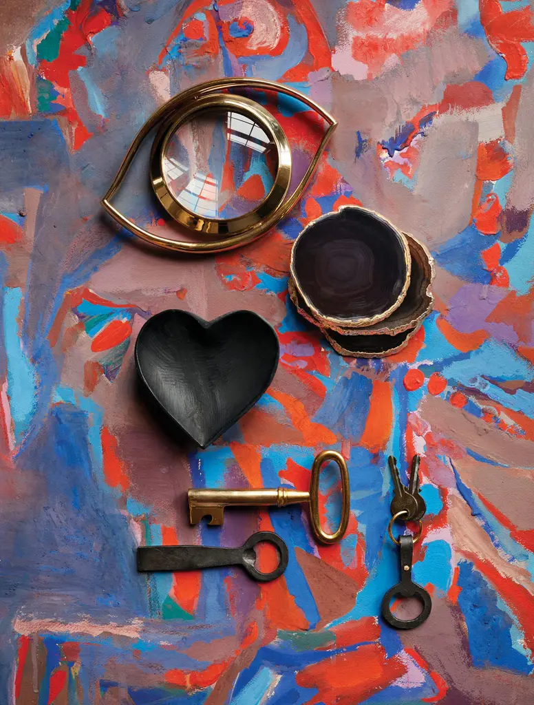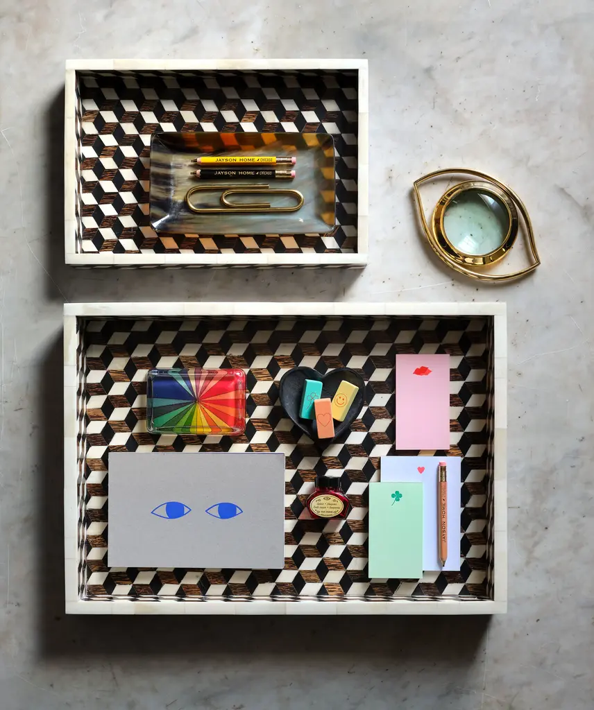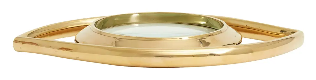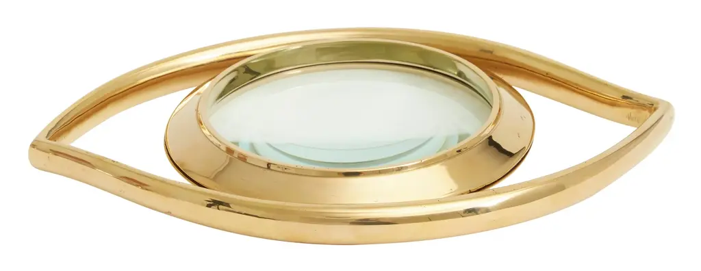 Get a close-up look at the fine print with our clever Brass Eye Magnifying Glass. This vintage-inspired desk accessory is modeled after the iconic Eye of Cleopatra Loupe, originally created for Hermès by French artist and designer Jean Cocteau in the 1960s. Pretty and practical, it’s crafted from solid brass, set with a round magnifying glass at its center. Our Brass Eye Magnifying Glass makes a useful addition to any workspace, perfect as a chic paperweight or for enlarging any small text you may encounter. We also love it on the coffee or end table as a stunningly unique accent. •brass •glass convex magnifying lens Dimensions •7.75"W x 5.25"D x .75"H •lens: 3.5" diameter