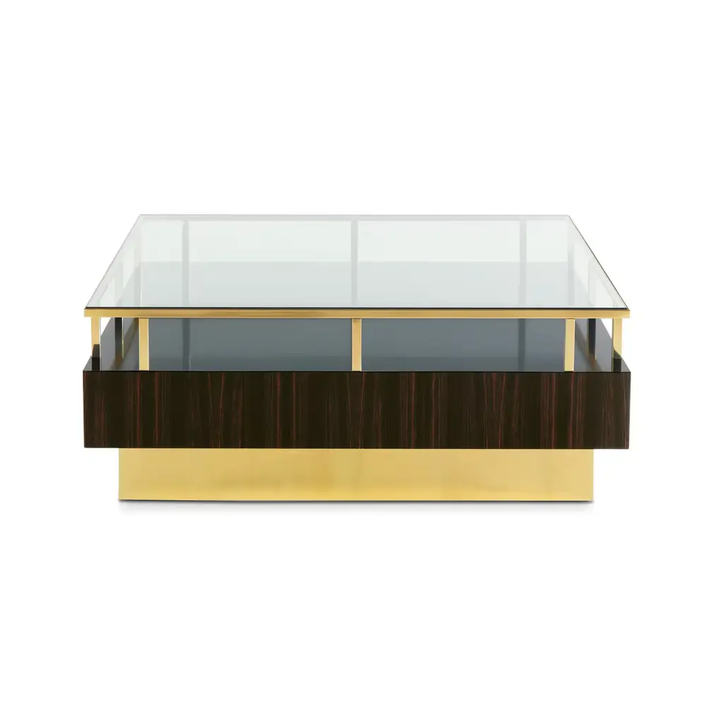 A modern take on a classic design, Side Table Ryan provides storage and style at once. The vitrine has a brushed brass finish frame with clear glass plates on the sides and the top and mirrored glass on the bottom. Sitting on a sturdy black base, it has a glass door on the side that gives access to the interior display case that is ideal for presenting books or decorative items. W28 x D20 x H18 in | Weight 68lbs W70 x D50 x H46 cm | Weight 31kgs Materials | Stainless steel, Wood, Glass Download Specification Sheet W28 x D20 x H18 in | Weight 68lbs W70 x D50 x H46 cm | Weight 31kgs Materials | Stainless steel, Wood, Glass Download Specification Sheet