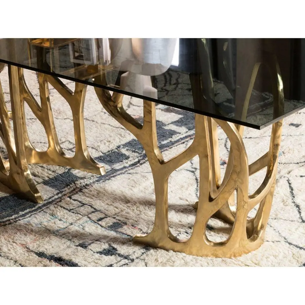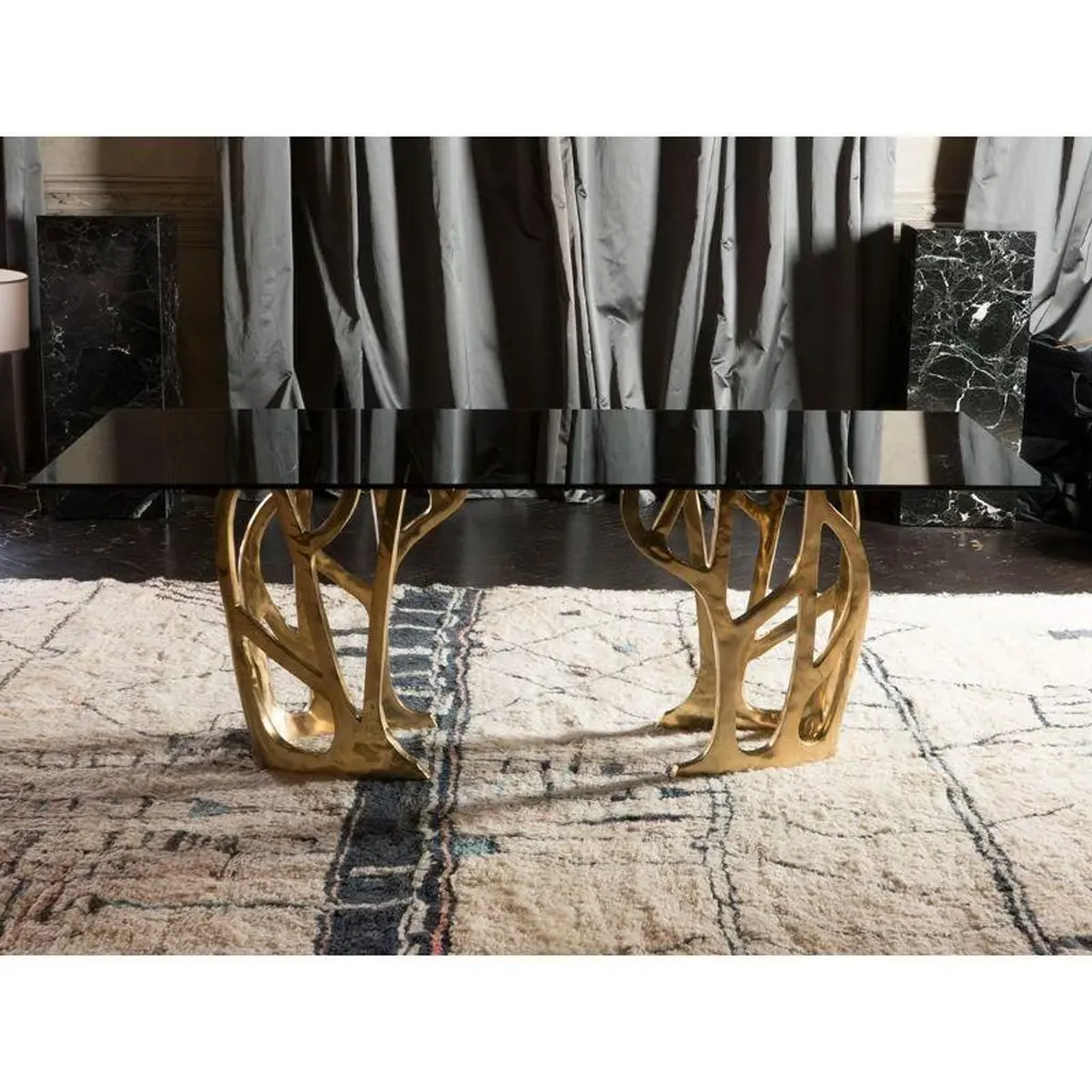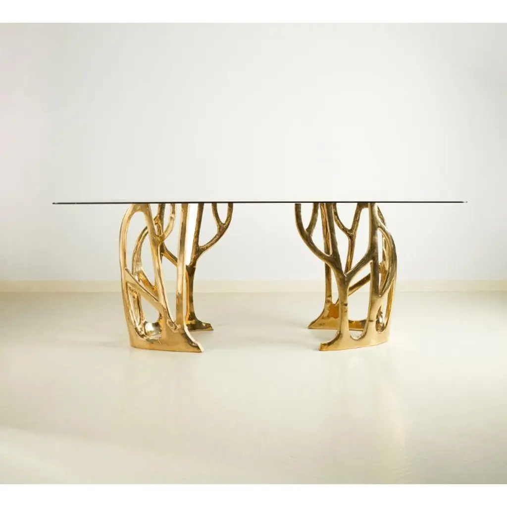 Brass Sculptural Galaxy Console Table by MisayaDimensions: W40 x D40 x H69 cmMaterials: BrassAlso available: different colors (gold, polished brass. black, painted brass) and materials ( wood, marble).Sold without glass top.MASAYA is our brand’s collection which combines stylishly refined designs with the purity of solid Wood & Marble Tops and Bronze Bases. MASAYA creates both classic and contemporary furniture that fits seamlessly into our everyday lives. As Thailand is globally renowned for its unsurpassed bronze work, products from our collections are often a unique mix of Wood and Bronze home furniture. These include Dining Tables, Coffee Tables, Consoles, Stools, Benches, Chairs, Cocktail& Side-Tables both for in-house or out-doors decorations. Our Wood consists of Teak Wood, also available in Makha Wood, Burma Pradauk Wood (also known as Andaman Red Wood) and others to suit your preferencesAdditionally, customers can also create custom sized furniture by combining MASAYA models, compatible sizes, Bronze base frames, a wide range of Wood tops of various types and sizes, also available in Marble tops, and colors to perfectly match your choice of perfection.MASAYA furniture is authentic, comfortable and natural. It is strong, functional and sturdy. Every product is finished carefully in our own workshops in Thailand. Each design embodies the same refined craftsmanship and adds to create a homely atmosphere. Our furniture design is created to give a naturally elegant look to your household, making you and your guests feel at home and welcomed.