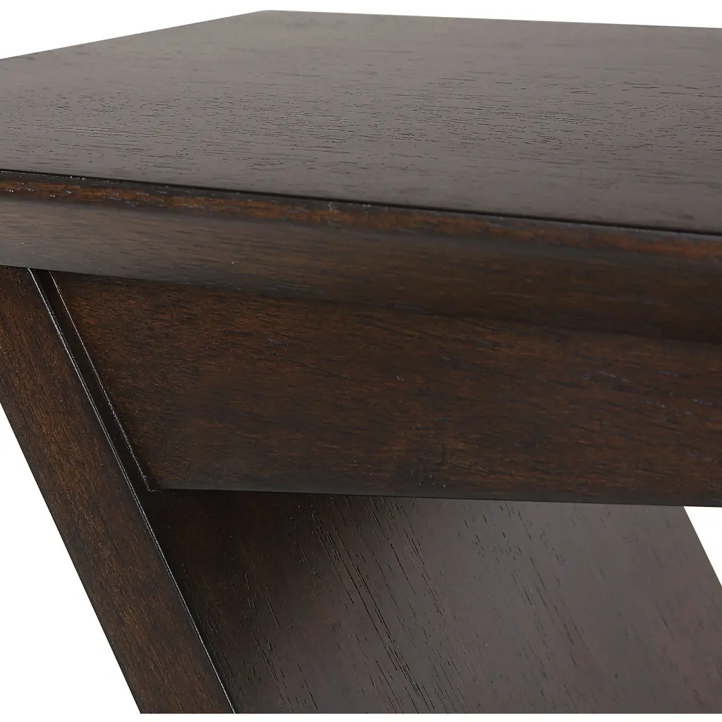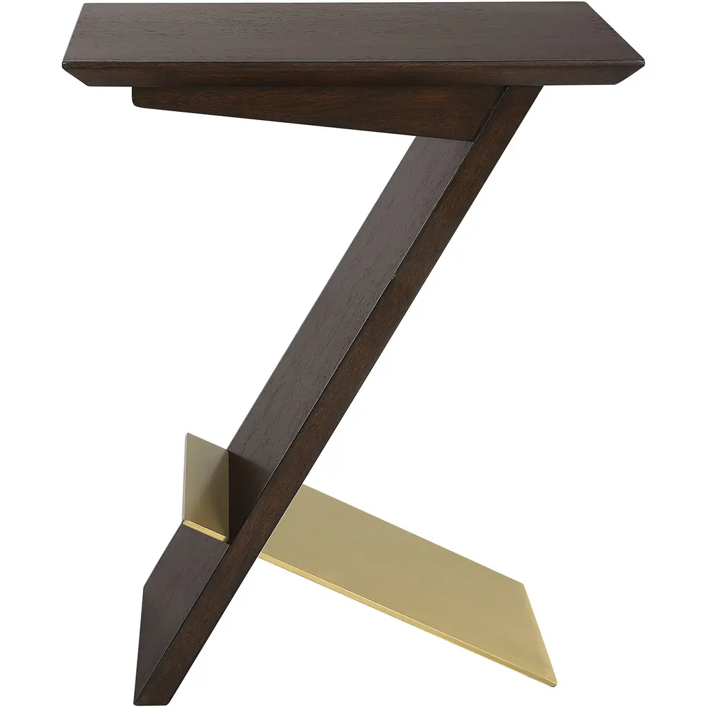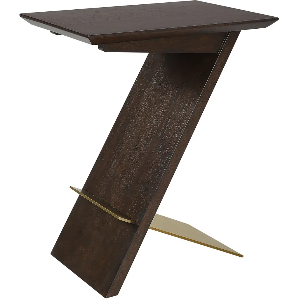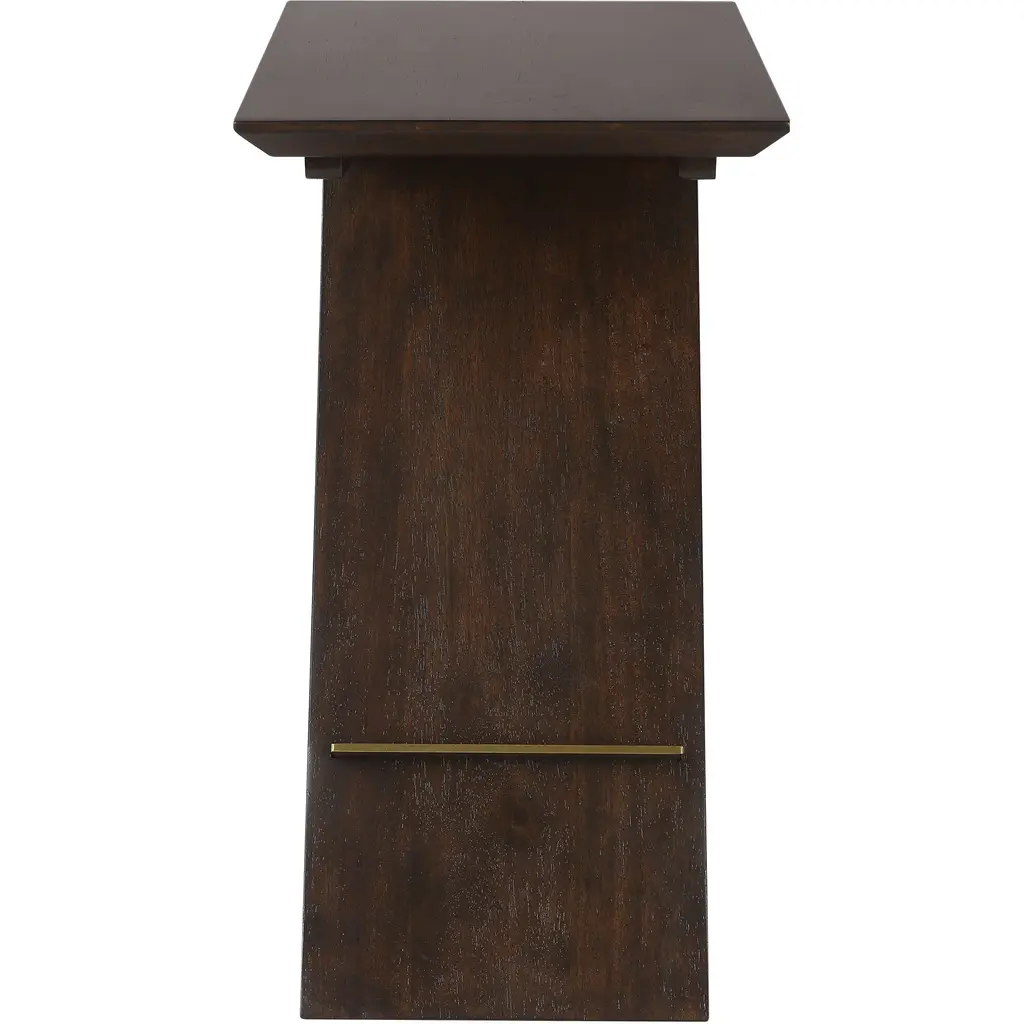 A Thick Stainless Steel Plate In Plated Brushed Brass Pierces Through The Rubber Wood Support In The Breakthrough Accent Table. Finished In A Rich Deep Brown Finish With Warm Undertones.