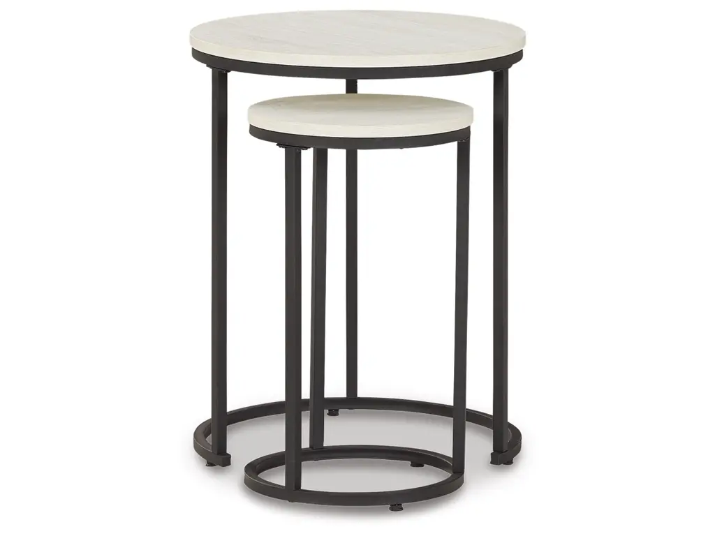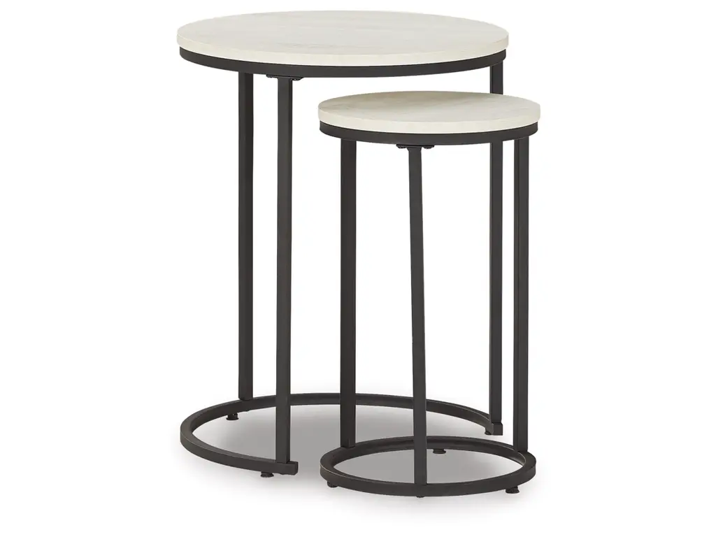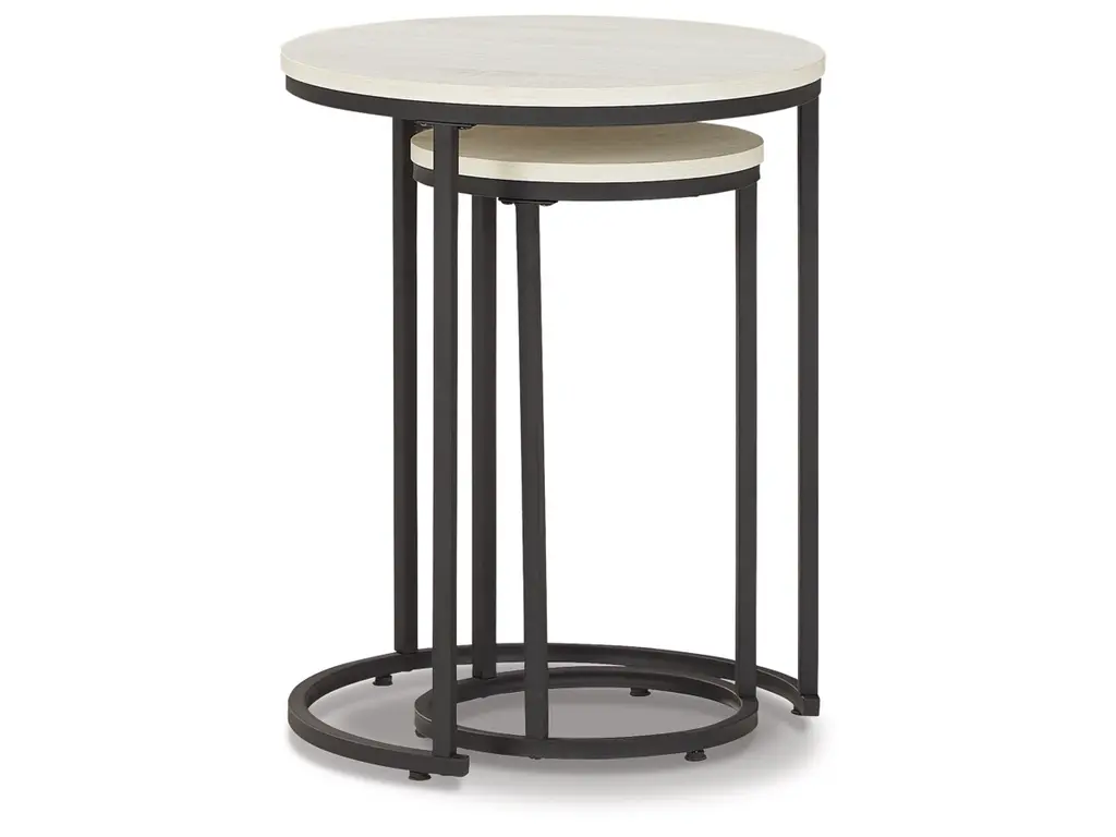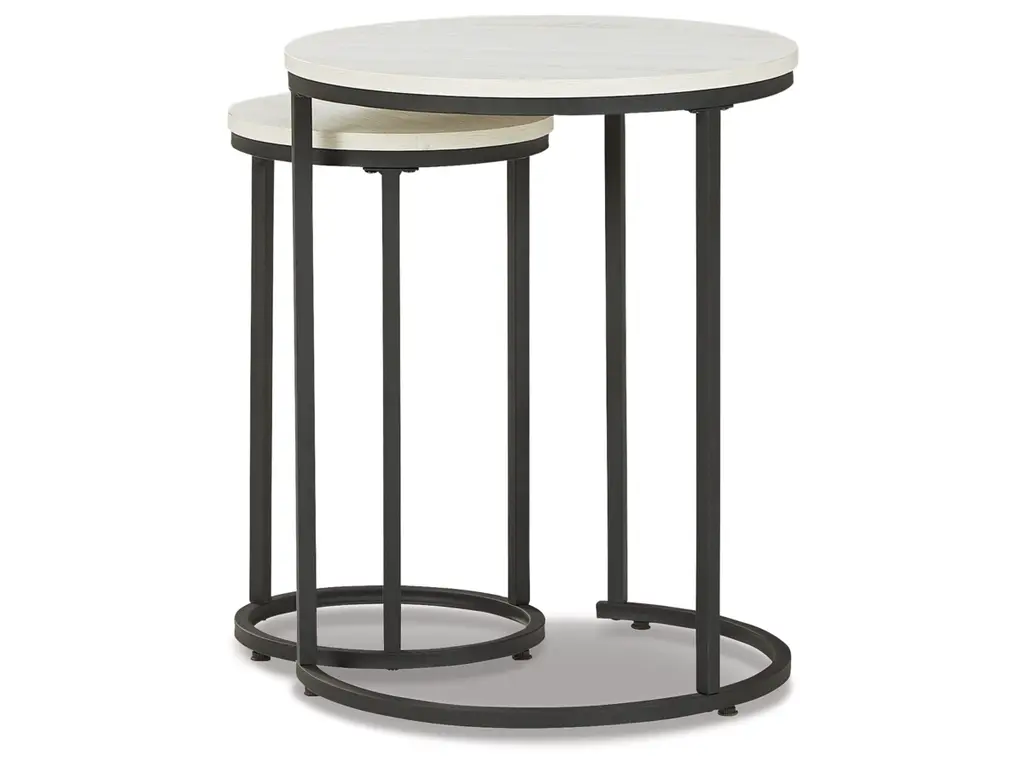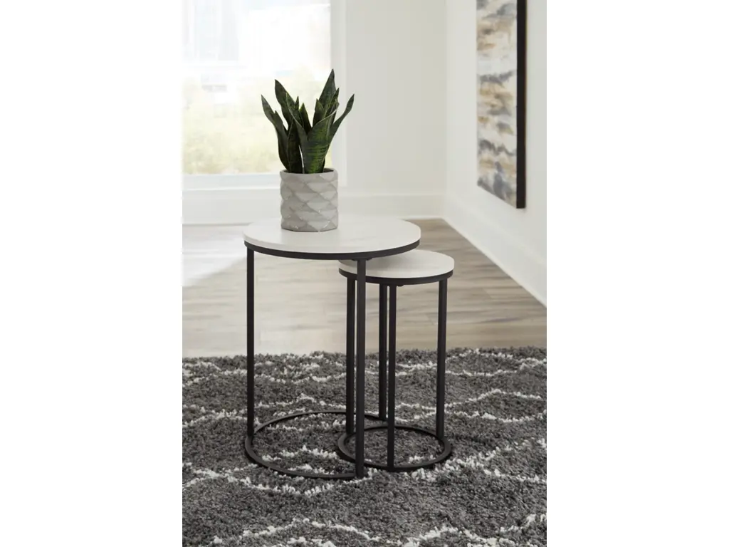 Round out your home with these Briarsboro circular top accent tables. In a nesting set of two, the white finished tables add casual flair. Black finished metal keeps things sleek. With space for lamps, photos and other accessories the possibilities for this set of accent tables are endless.