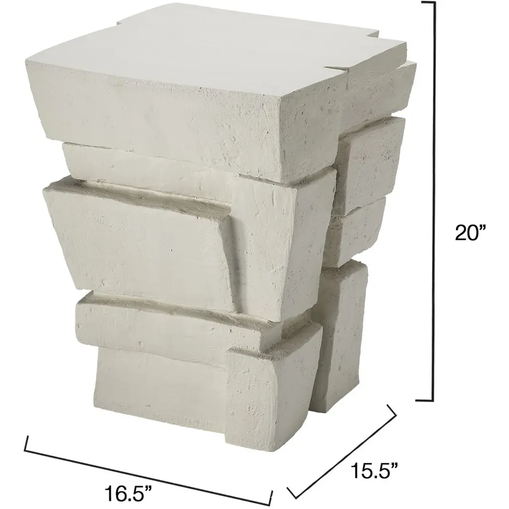 Inspired by the still inexplicable prehistoric piled stone monuments scattered throughout Europe, this striking side table has been expertly crafted using slightly more modern techniques. Our artisans use creamy white fiberglass, which is durable, weather resistant, and significantly lighter in weight. The side table is an unexpected way to add a little wow to your decor