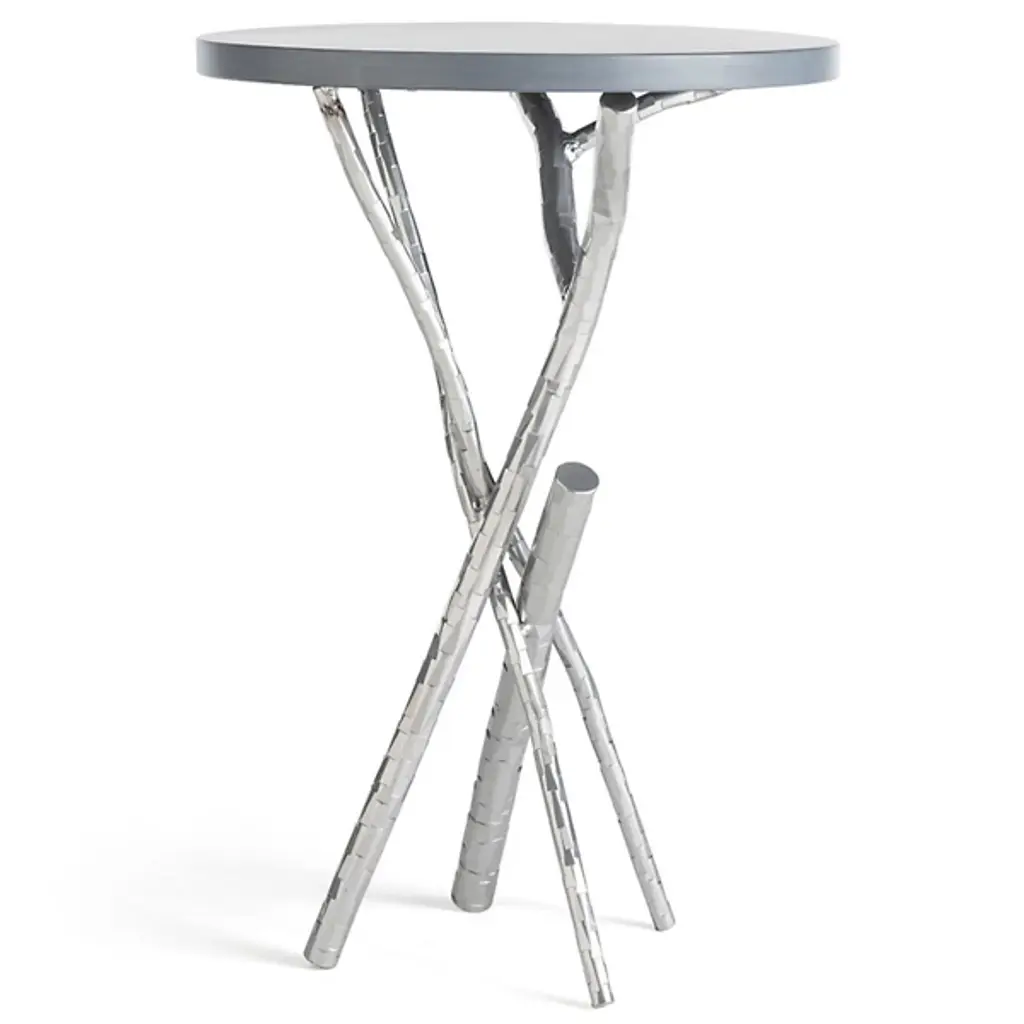 The Brindille Wood Top Accent Table from Hubbardton Forge is its own work of art, featuring the best in American handcrafted design and build. The table's branch-like legs are each individually hammered by expert blacksmiths in Hubbardton Forge's Vermont forge, acting as a base of the solid Vermont maple tabletop. The result is a uniquely sculptural piece of furniture with an organic, artisanal aesthetic. Use it as a side table in a living room, next to a reading chair or flank a bedside with a pair as nightstands.