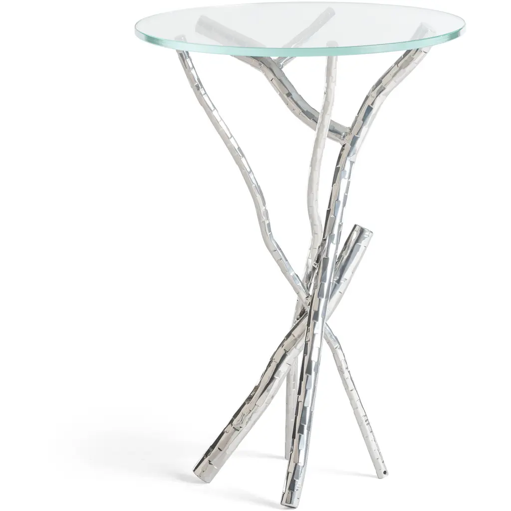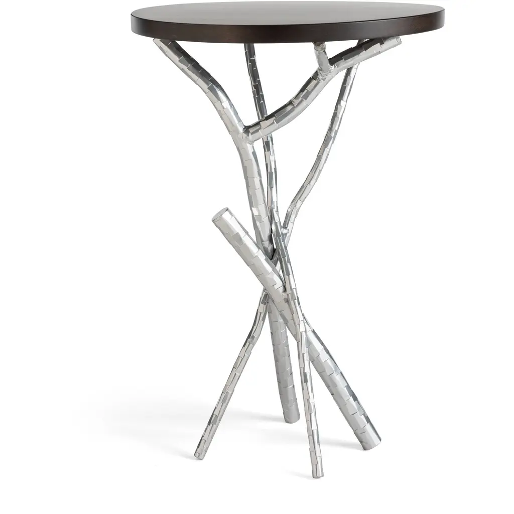 The Brindille Wood Top Accent Table from Hubbardton Forge is its own work of art, featuring the best in American handcrafted design and build. The table's branch-like legs are each individually hammered by expert blacksmiths in Hubbardton Forge's Vermont forge, acting as a base of the solid Vermont maple tabletop. The result is a uniquely sculptural piece of furniture with an organic, artisanal aesthetic. Use it as a side table in a living room, next to a reading chair or flank a bedside with a pair as nightstands.
