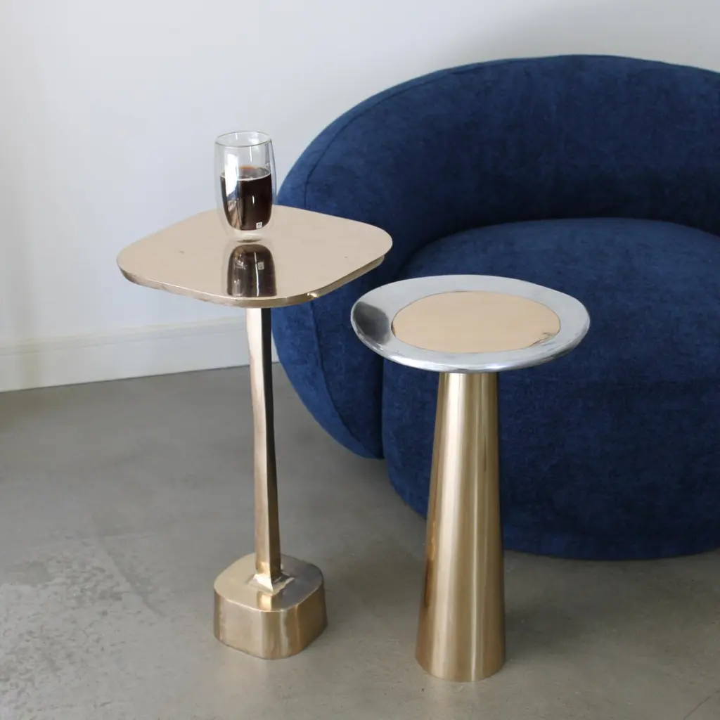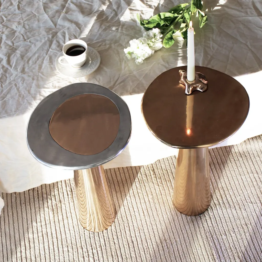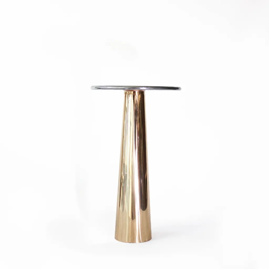 Bronze and Aluminum Cone Side Table I by Studio SuntDimensions: D 31 x H 54 cm. Materials: Bronze, Aluminum.Studio Sunt is an Istanbul-based design studio that renews traditions by applying fine craftsmanship to contemporary design with the experience of casting since 1965 and the wisdom it brings. Sunt creates something enthusiastic with a sense of refinement that merges abstraction and life forms and is inspired by different geographies, cultures, individuals, and experiences. Sunt works with a network of talented craftsmen who help raw materials reach their full potential, guide the creative process, and create a unique vision using the best craftsmanship. With its infinite curiosity, Sunt explores the possibilities of producing versatile and elegant designs while being exclusively handcrafted by local artisans. Bronze, the brand's signature material, exudes the aura of nature and ideas of experience, growth, strength, and security. It is most prominently associated with strength, stability, and support. Sunt's design philosophy aims at sustainability by creating lighting and furniture that will last for their exceptional quality and timeless appearance. The result is a contemporary collection piece that conjures up the refined art of centuries-old craftsmanship.